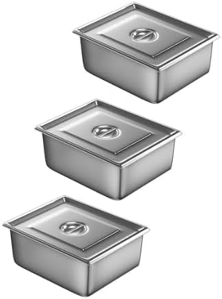 Garvee 3 Pack Stainless Steel Food Pan 6" with Lid Table/Hotel Pan for Food Warmer in Gatherings Camping and Restaurants