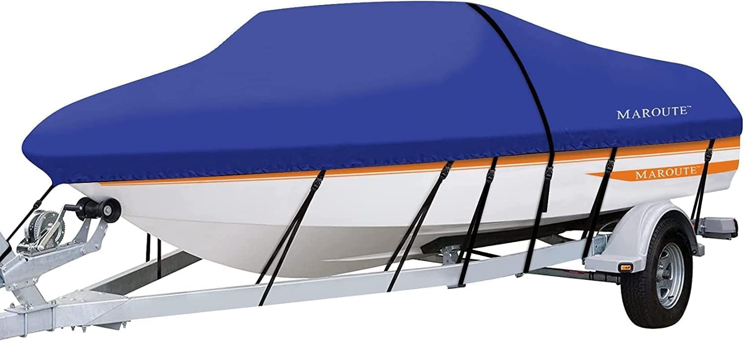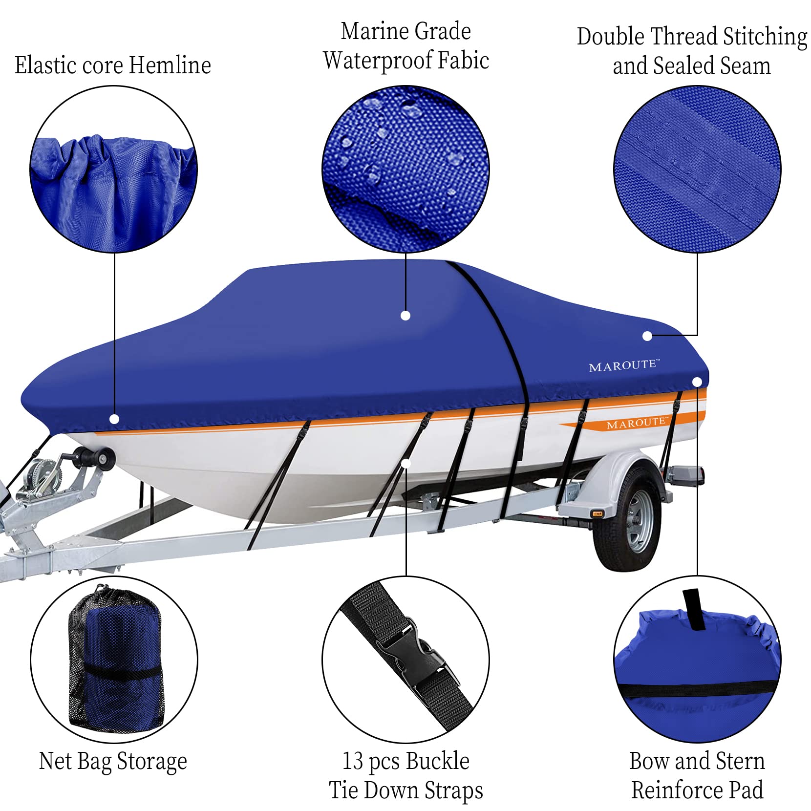 Garvee Boat Cover, 600D Waterproof Trailerable Marine Grade Polyster Canvas Fits V-Hull, Tri-Hull Fishing Boat, Runabout, SKi Boat, Bass Boat