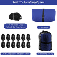 Equipado con 13 correas para fijar tu barco y protegerlo durante el viaje del remolque o con viento fuerte.