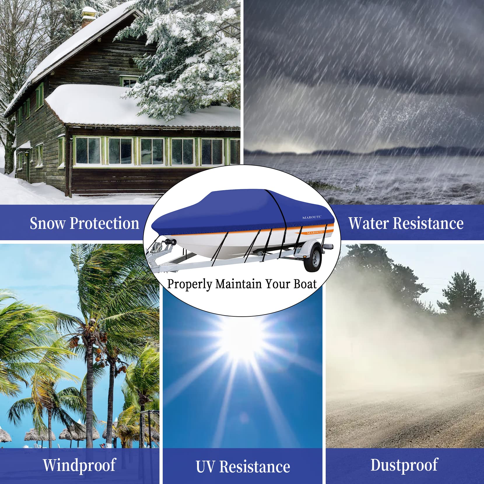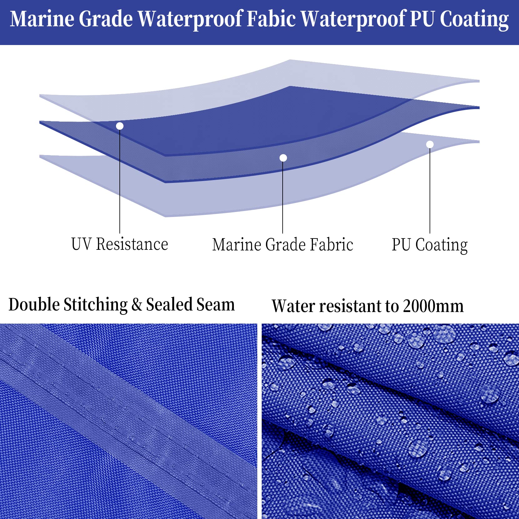 Hecha de lona de poliéster de grado marino 600D resistente con doble revestimiento de poliuretano, esta funda para barco es impermeable, resistente al viento, resistente a los rayos UV, resistente al desgarro y remolque. La tela mejorada muestra más durabilidad.