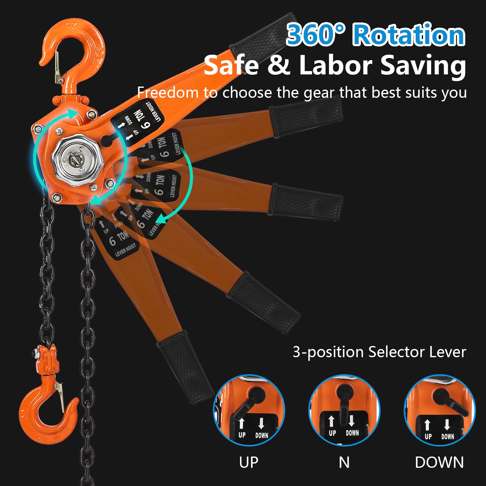 Garvee 6 Ton 20 Ft Lever Chain Hoist, Dual Hooks for Garages