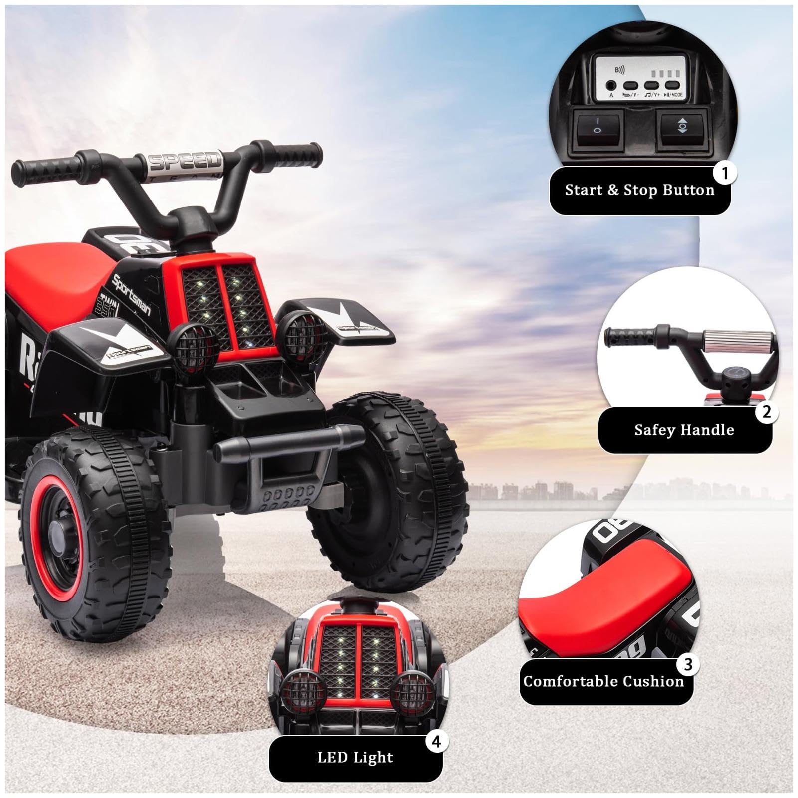Garvee Ride - P Series: 6V Kids Ride On Electric ATV, Ride Car with LED Headlights, Ride-On Toy for Toddlers 1-3 Boys & Girls with Music, Forward & Reverse - Black