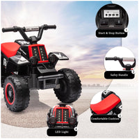 - All-Terrain Drive Kids 4 Wheeler - Equipped with wear-resistant wheels, this 4-wheeler quad allows your little ones to ride on all terrains, such as dust, grass, cobbled road and more. Indoors or outdoors, your babies may enjoy self-driving wherever they want.