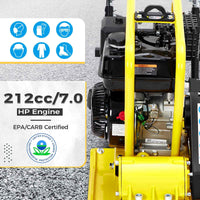 Garvee 7.0 HP Plate Compactor, 4500LBS Compaction Force, 212cc Gasoline Engine 5760 VPM, Power Vibratory Soil Tamper Compactor Machine, EPA Compliant