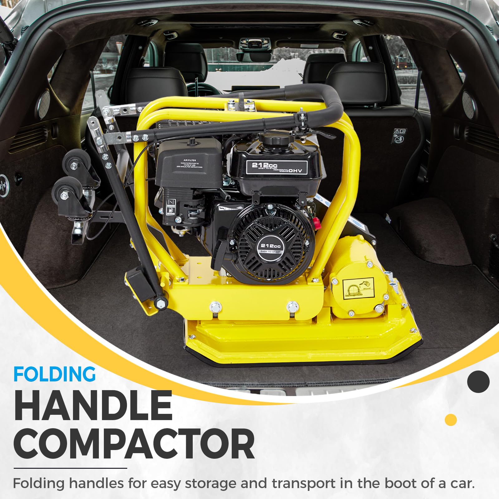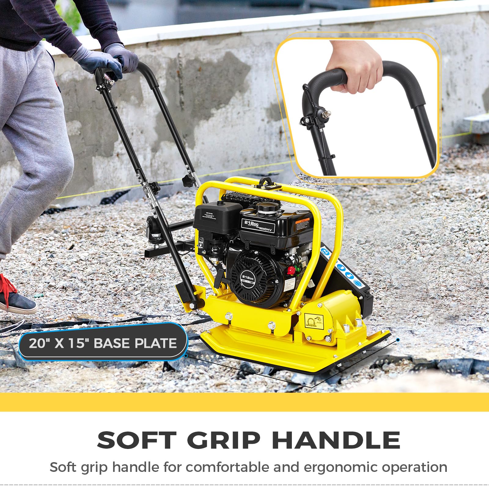 Equipped with a high-performance 212cc engine, delivering powerful compaction force for various materials including soil, gravel, and asphalt.