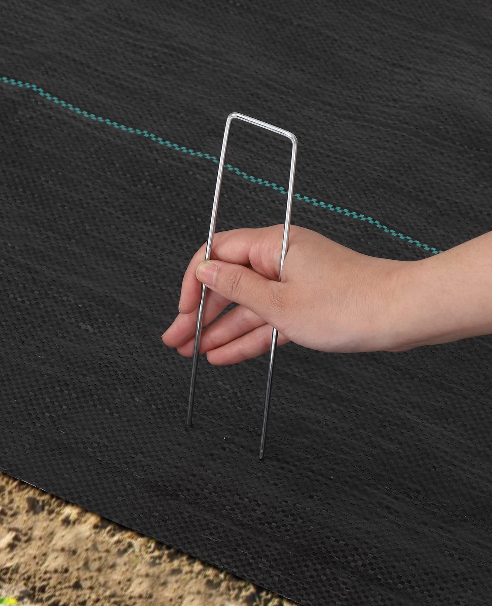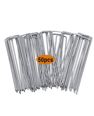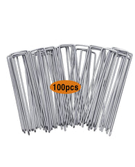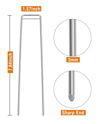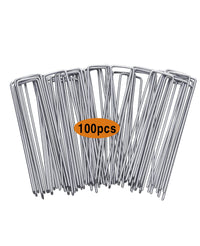 Garvee 100 pcs 7.8 Inches U-Type Heavy Duty Galvanized Steel Garden Stakes Staples Securing Pegs for Securing Weed Fabric Landscape Fabric Netting Ground Sheets and Fleece, Garden Staples Pins
