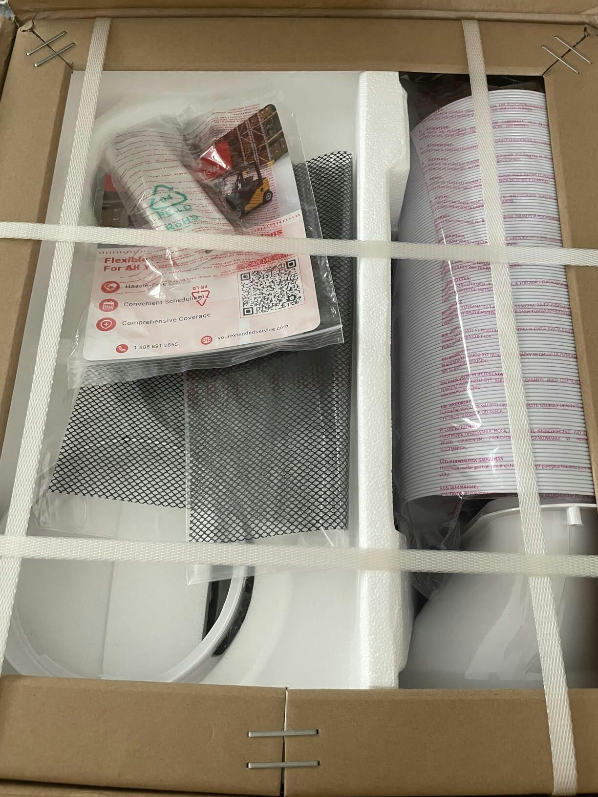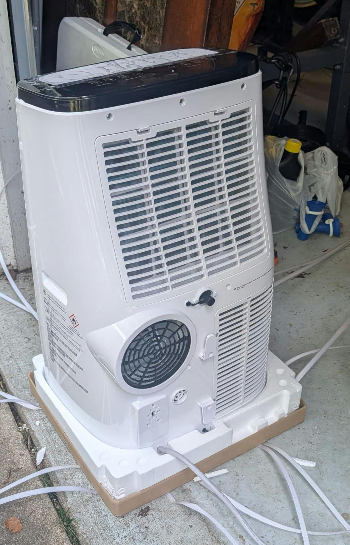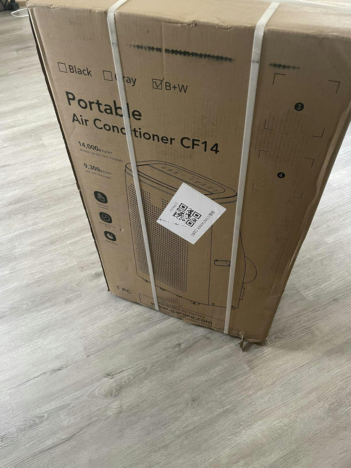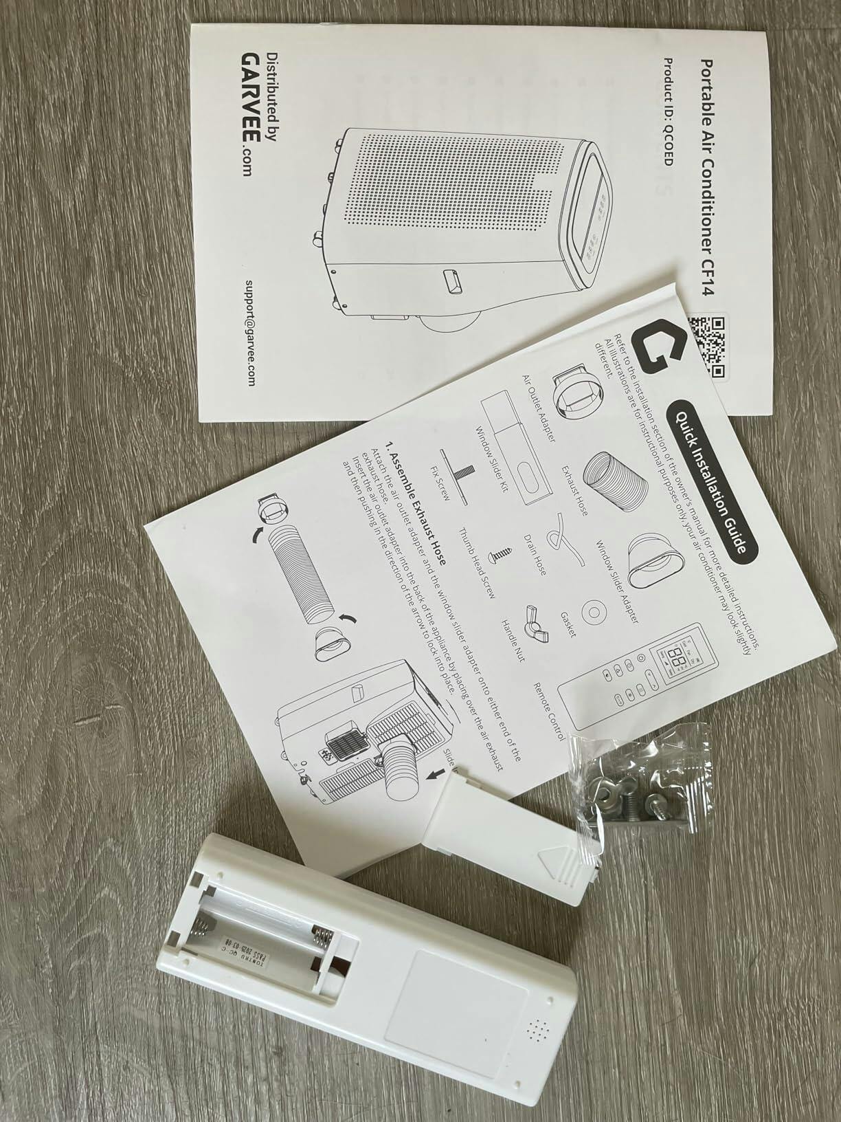 GARVEE Portable 3-in-1 cooling AC unit with dehumidifier fan sleep mode black&white cap 14,000 BTU. This arrived like-new and very-well-packaged in a big box with lots of styrofoam, nylon straps, and padding. It comes already mounted on the wheels, which was a relief. There’s an instructions manual, quick install guide, tubing drain, air tube, window attachments, and remote(AAA batteries not included). There’s also grips on the side but I do wish they were mounted a little higher on the machine. I’m short and there’s nooo way I’m lifting this by myself, especially after it’s been running for a bit.Anyways, the machine itself is very well-made and sturdy. The included tubing, however, is ridged and difficult to work with. I was VERY gentle with it and it took forever to twist on the attachments at a slow pace. Then I noticed after a couple days there was a 1/2” hole near the bend! Very frustrating considering this is an almost $500 unit and no such issues like this with our 180$ Walmart cheapie ac.Also, beware of the window insert if you don’t have a power saw etc. Neither me or my hubby are especially “handy” and unfortunately this wouldn’t fit our window without needing to be cut. The instructions simply say to “cut to fit”. Which is easier said than done! There’s no way I’m cutting this hard plastic pvc material with kitchen scissors or even pliers lol. We made do with what we had and screwed the attachment into the pvc board. It’s not perfect and has a gap(which isn’t the most energy efficient) but it is what it is. Our rancher-style house gets toasty during the summer and we had a week of back to back 90+ days so our old little standing ac just wasn’t cutting it!On the bright side, I’m pleased to report this ac runs COLD and FAST! Within a few minutes of first turning it on our bedroom felt noticeably cooler! In fact, it runs so cold that it’ll ice up inside. It’s supposed to periodically power down to defrost to prevent this, according to the instructions, but I’ve noticed it does not. If I leave it on say 66-68° for a few hours straight I have to remember to remove the filter to check it otherwise I’ll be stuck manually defrosting it for at least an hour. Not exactly optimal during very hot weeks. But if I manually switch between fan and cold occasionally this seems to avoid this.Compared to our old unit; this GARVEE far superior overall, very quick and cooling but a little more noisy. It’s only popped the breaker once in the almost-month we’ve had it, which is pretty good imo, lol. I’m not the biggest fan of the top-vent design, but it’s growing on me. Instead of feeling the air blowing directly on you, you’ll feel it moving in and around the room. Our exact square footage is around 1,500 ft I believe. It cools our bedroom, some of the bathroom, and a little bit of the hallway. Our old ac(now relegated to the living room) does the rest of the work. This would probably be powerful enough to cool a small apartment, if the living plan was relatively open/has minimal walls.My final complaint is with the plastic drain tube they send with this set. It’s the same size as the one that came with our old ac(which is smaller!) and does not fit! The very first time I attempted to drain this, I ended up with water all over my floors. The tank is def twice the size of our old one at LEAST because I soaked 2 full sized bath towels!! If you use a container, you’ll need a very shallow one. Mine was not shallow enough plus the stream was too fast/heavy, and it back-flowed. Now we use gallon-sized plastic bags to empty it and works pretty smoothly. Idk why I didn’t think of it before.Overall, this is a very nice AC unit. Very powerful. I WANT to give it 5 stars but I feel like for the high cost the attachments should be better quality, it should come with batteries, and not ice up aggressively inside. Just my 2 cents.