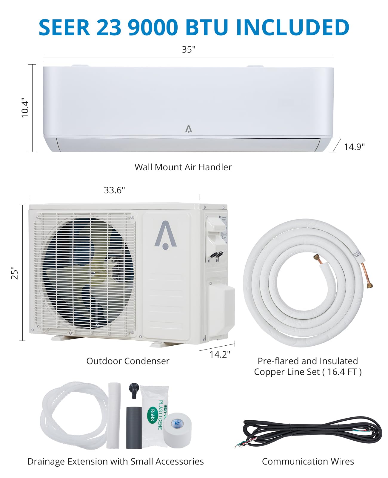 Garvee Mini Split AC/Heating System With WiFi, 9000 BTU 23 SEER 2 115V~, With Energy Star Certification, Suitable for 450+ Sq. Ft