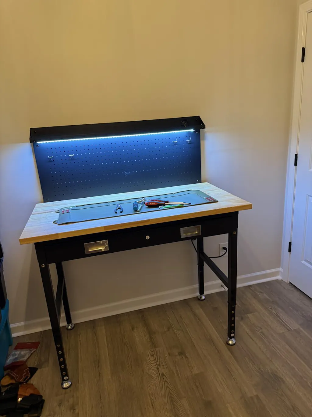 | Package Included | 1 x Pegboard with Multiple Holes; 1 x Drawer; 1 x LED Light Strip; 4 Casters + 4 Rubber Feet;30 x Hooks;18 x M6*12mm Bolts;20 x M8*12mm Nuts;14 x M8*65 Hexagonal Screws;8 x Screws;1 x Pair of Sliding Rails; |
