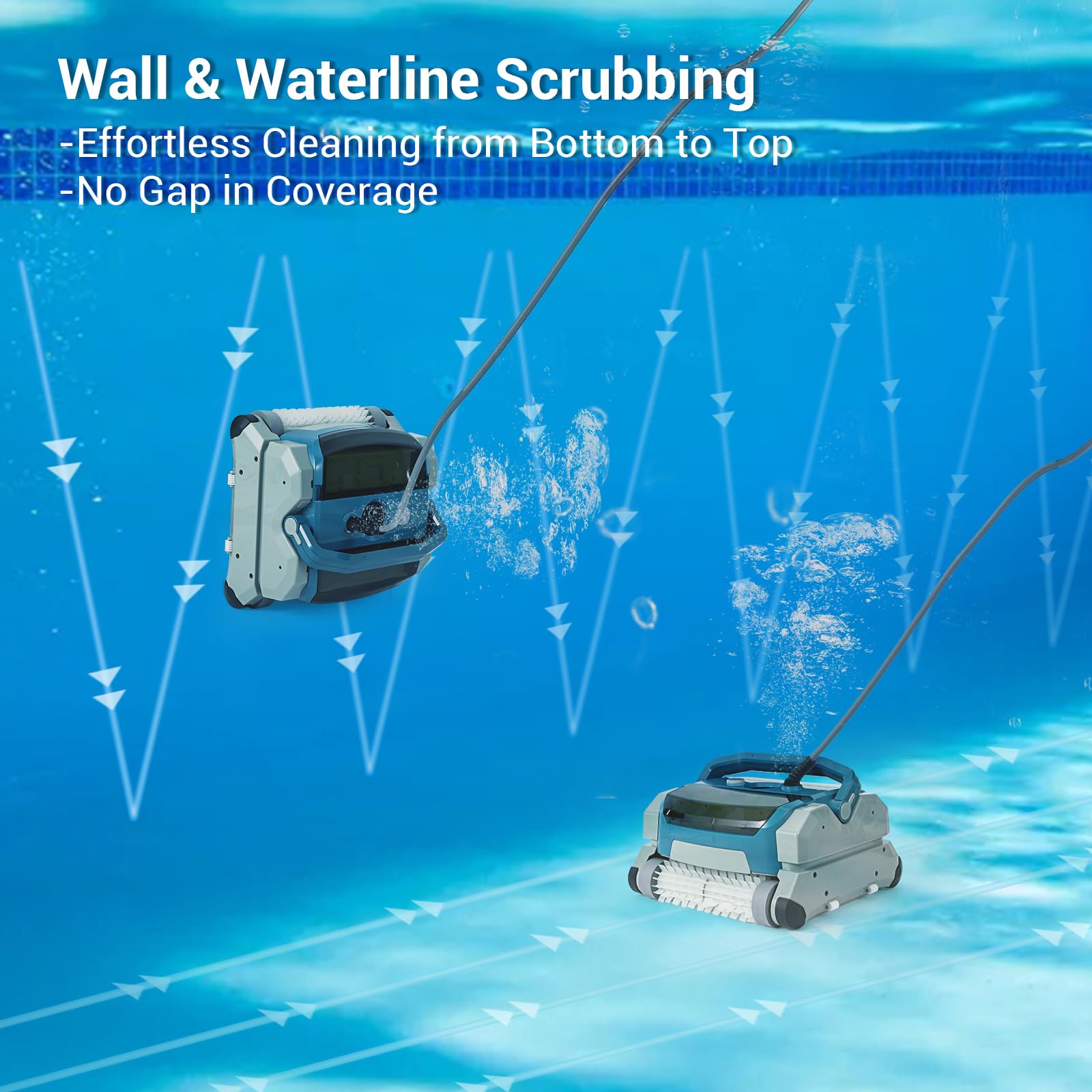 - Full coverage automatic cleaning of bottom, walls, and waterline