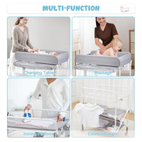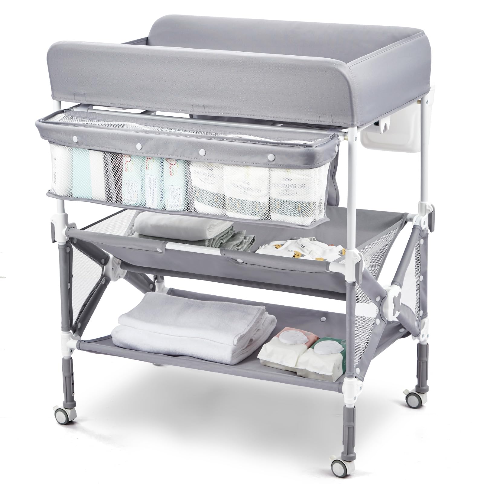 Garvee Portable Baby Changing Table, Garvee Foldable Diaper Change Table with Wheels, Adjustable Height, Cleaning Bucket, Changing Station for Infant Mobile Nursery Organizer for Newborn, Grey