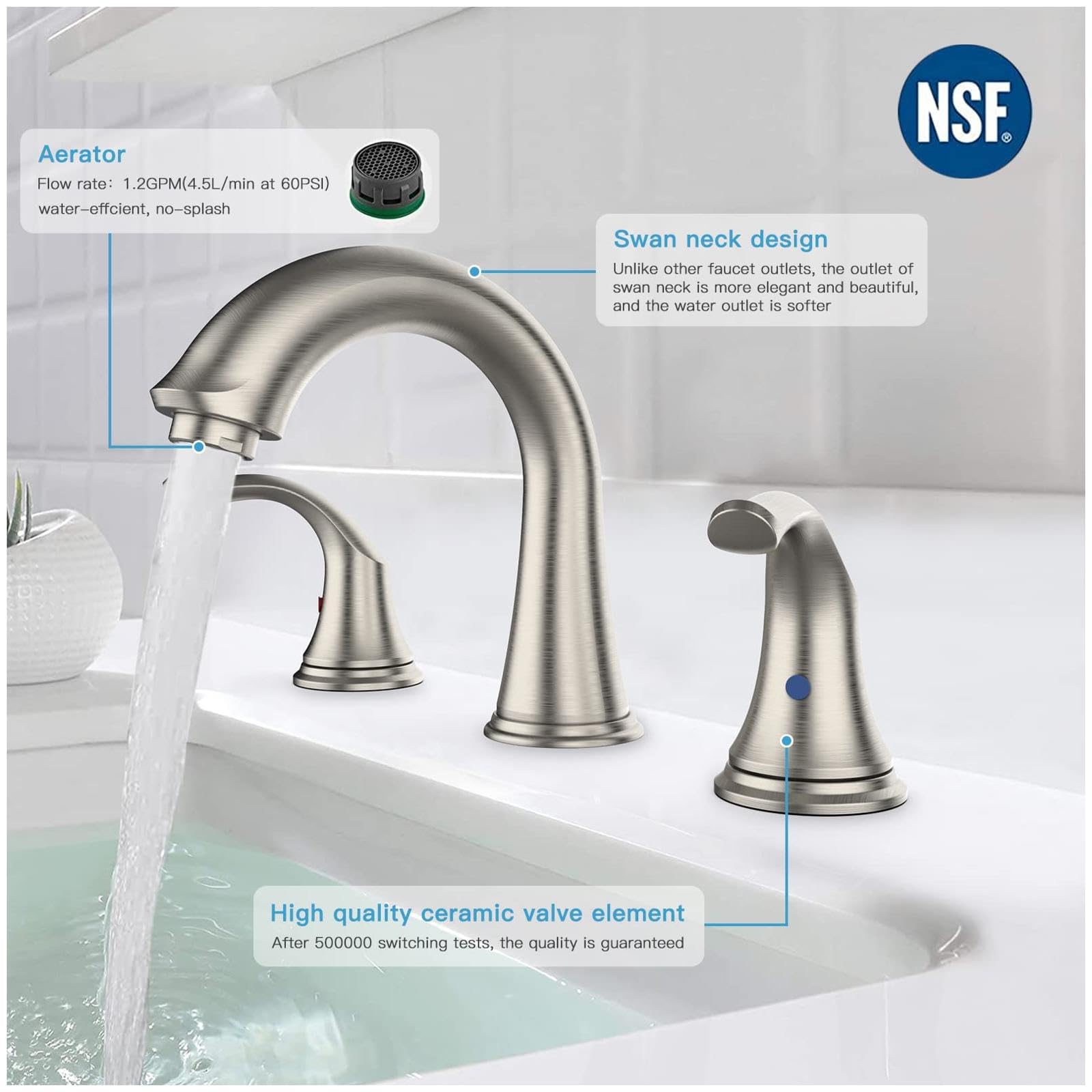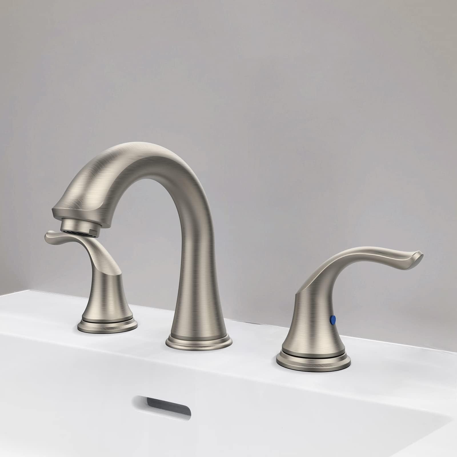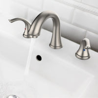 Transform your bathroom with our stylish and practical 8-inch widespread bathroom faucet. Featuring a unique swan neck design and brushed nickel finish, it's the perfect blend of form and function for your modern bathroom.