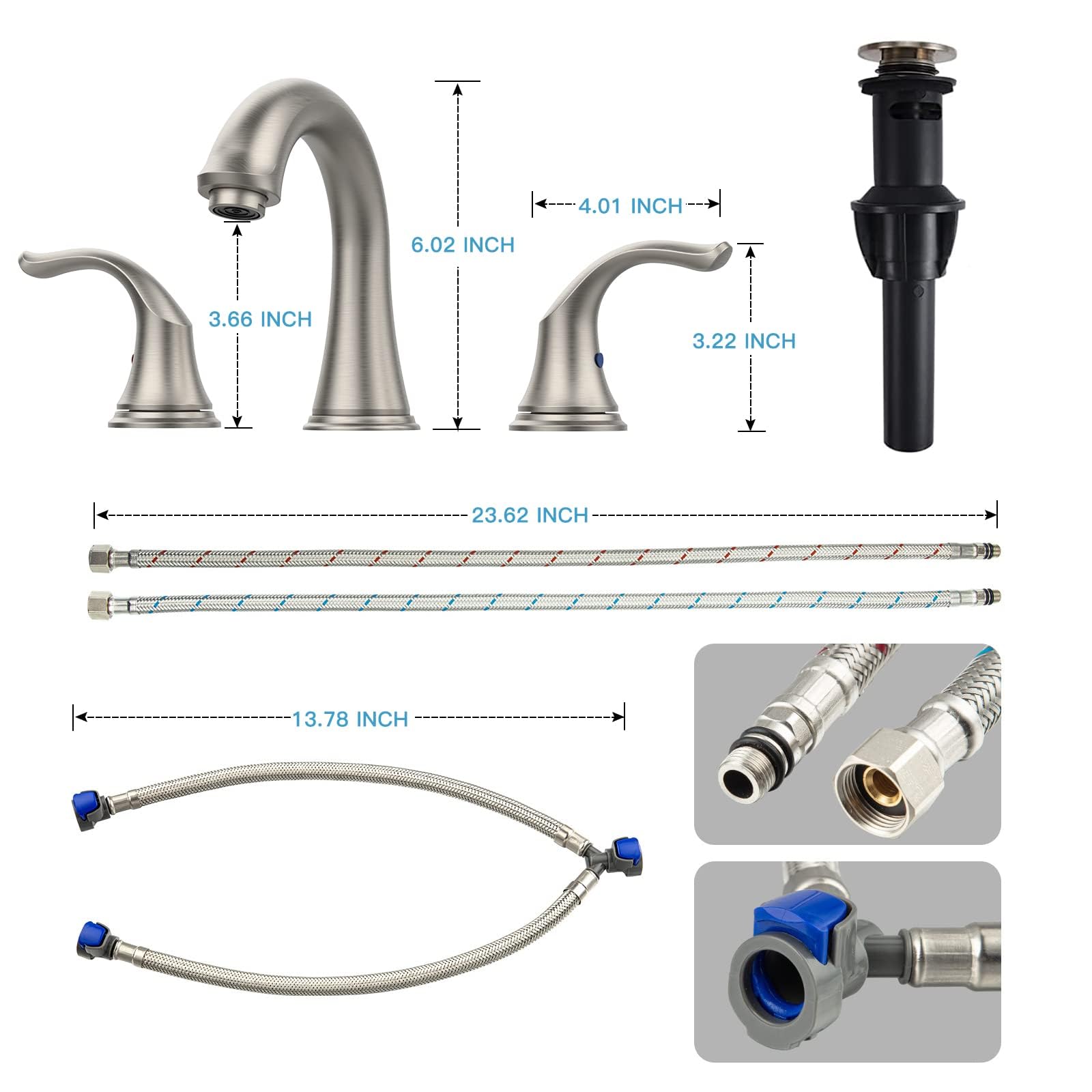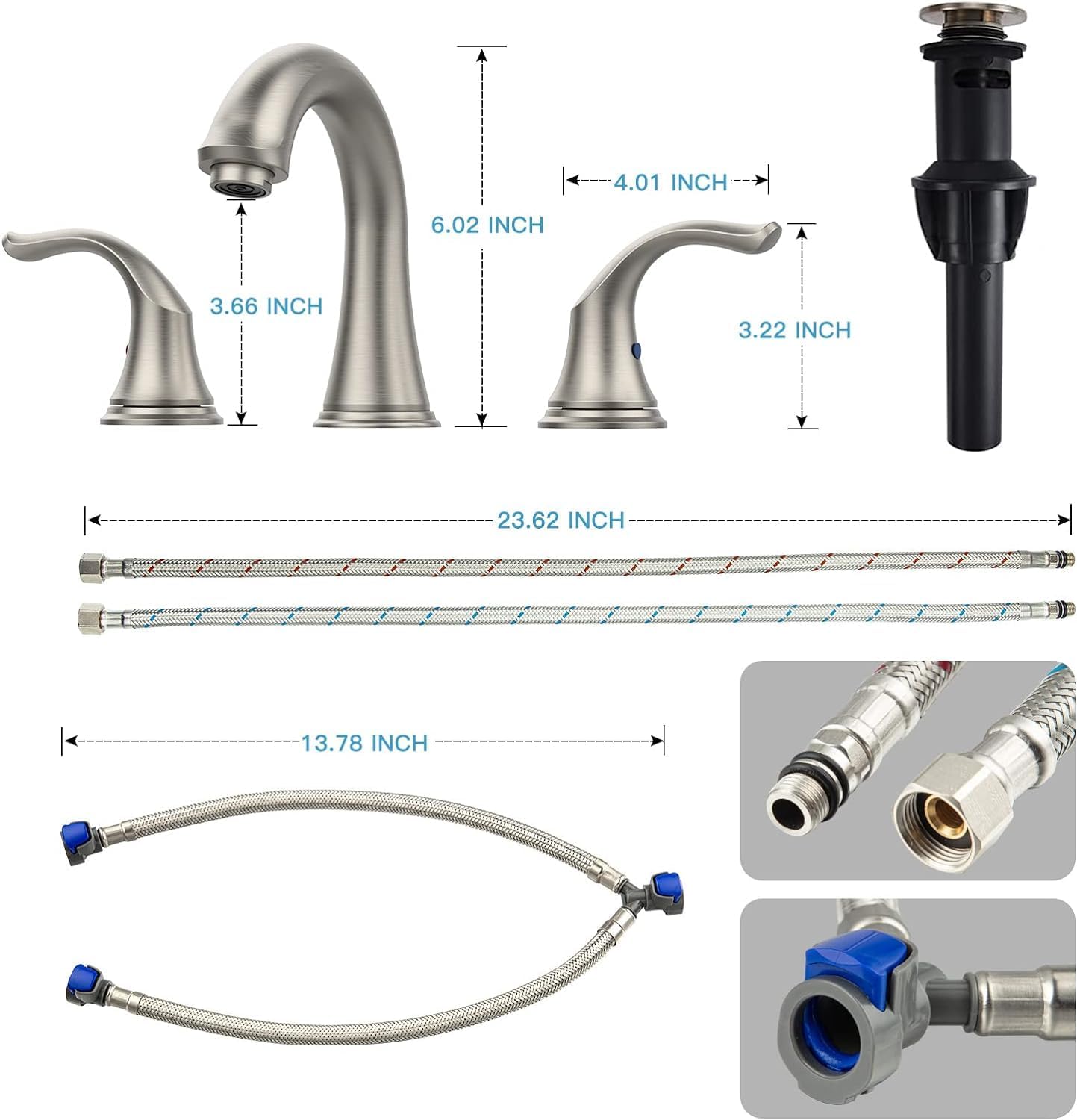 Garvee llave de baño, llave de baño con cuello de cisne para fregadero de 3 agujeros, llave de baño de níquel cepillado de 8 pulgadas con drenaje desplegable y líneas de agua (níquel cepillado)