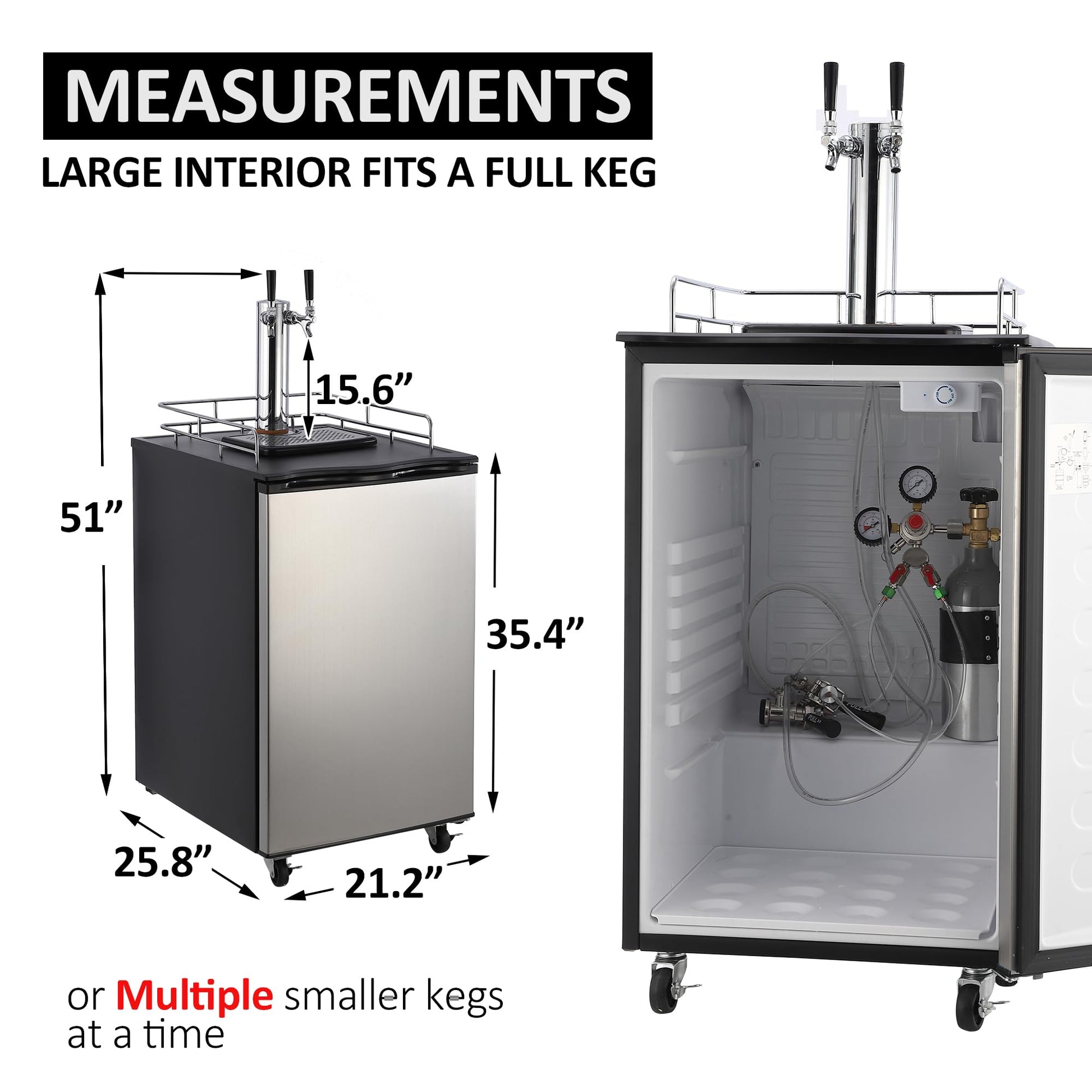 - Spacious Interior: Fits one full-size keg (15.5gal), a quarter keg (7.75gal), or three 5-gallon commercial kegs