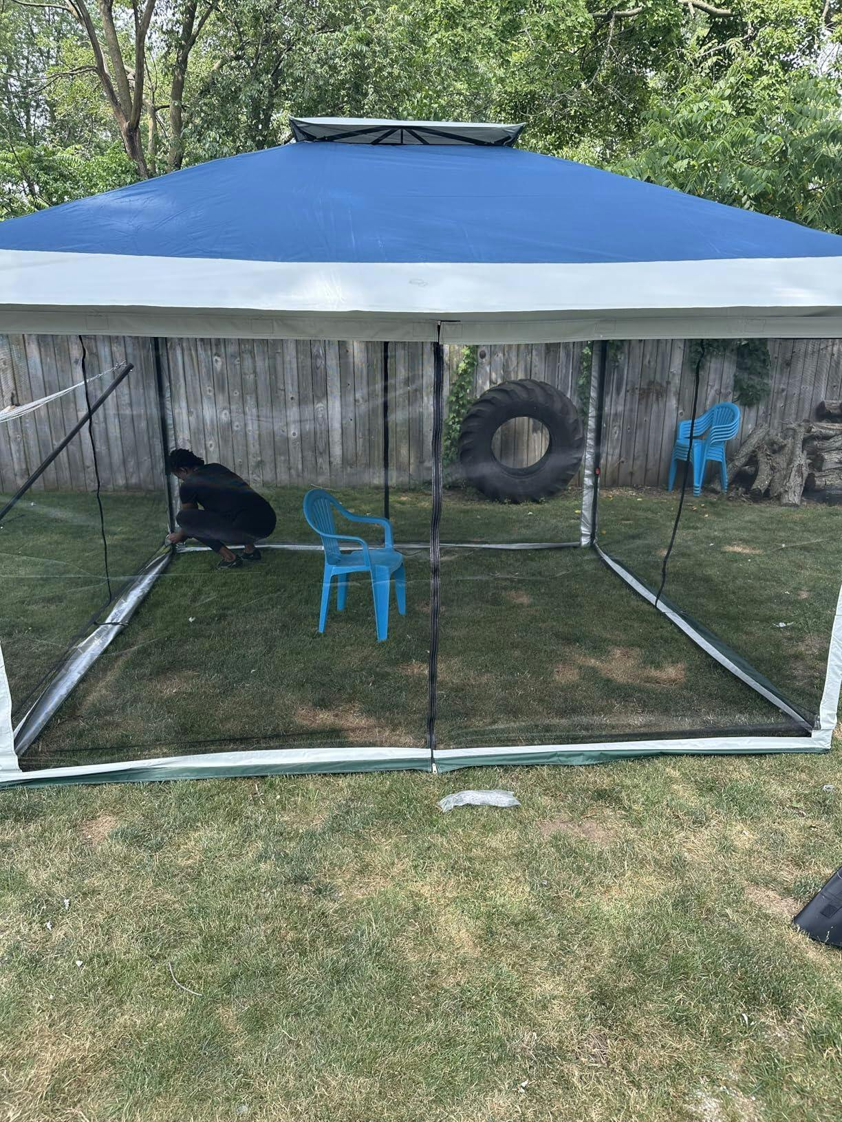 I really like this gazebo. It is very nice and sturdy and keeps out the rain and sun. I looked at multiple canopies before choosing this one and chose this one because it was the closest thing to a waterproof canopy I could buy. My husband and I love to sit outside on stormy days and now we can.Now for the bad. Yes, this canopy is definitely worth the money and it's affordable, but it's not for the weak to assemble. The instructions are rather complicated. By the end of the day, my husband and I were trying to rip our hair out. At the end of the day, we were both happy to finally put it together. I can tell you we won't be taking it down for a long time, this tent is perfect for the house, you can hang it up and sit in the shade or watch the rain, there is plenty of room and the mesh really keeps the bugs out.