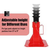 - Adjustable Height: 13" to 19" range with 5 pin-facilitated adjustment points for versatile use.
