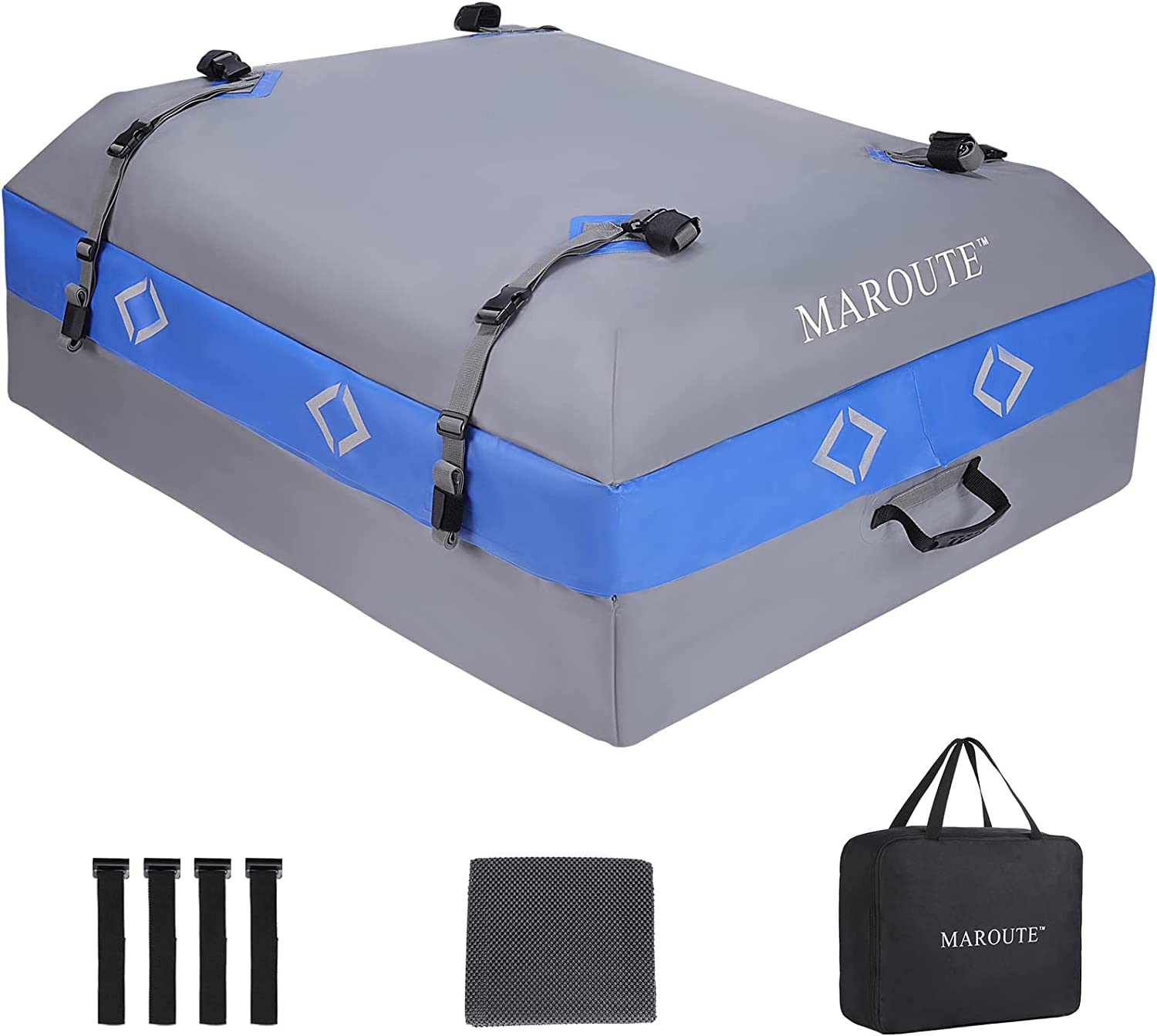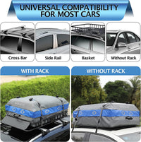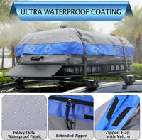 Garvee Rooftop Cargo Carrier Bag, 21 Cubic Feet Heavy Duty Waterproof Car Roof Bag, Fits All Cars with/without Rack, 8 Door Hooks, Storage Bag, Blue & Gray