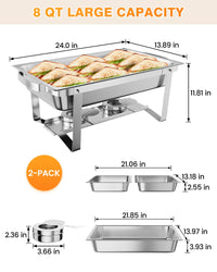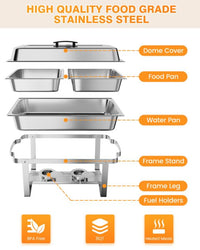 Garvee 8QT(2×1/2Pan)Chafing Dish Buffet Set of 2 Stainless Steel Food Servers & Warmers, Includes Water Pan, for Weddings, Parties, Banquets, Catering