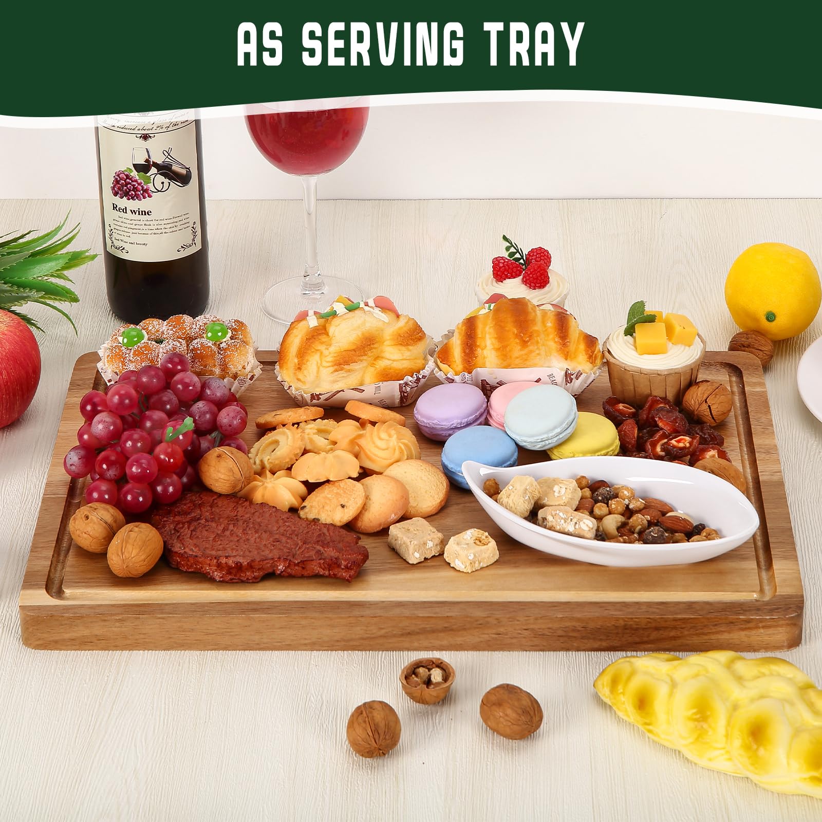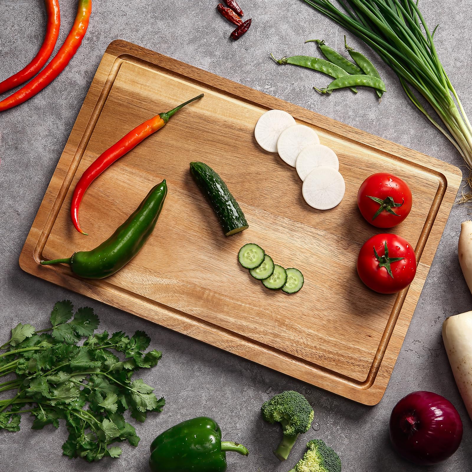 Garvee Cutting Board, 18x12 Large Acacia Wooden Cutting Board for Kitchen, Edge Grain Wood Chopping Board with Juice Groove and Handles, Pre-Oiled Carving Tray for Meat & Cheese