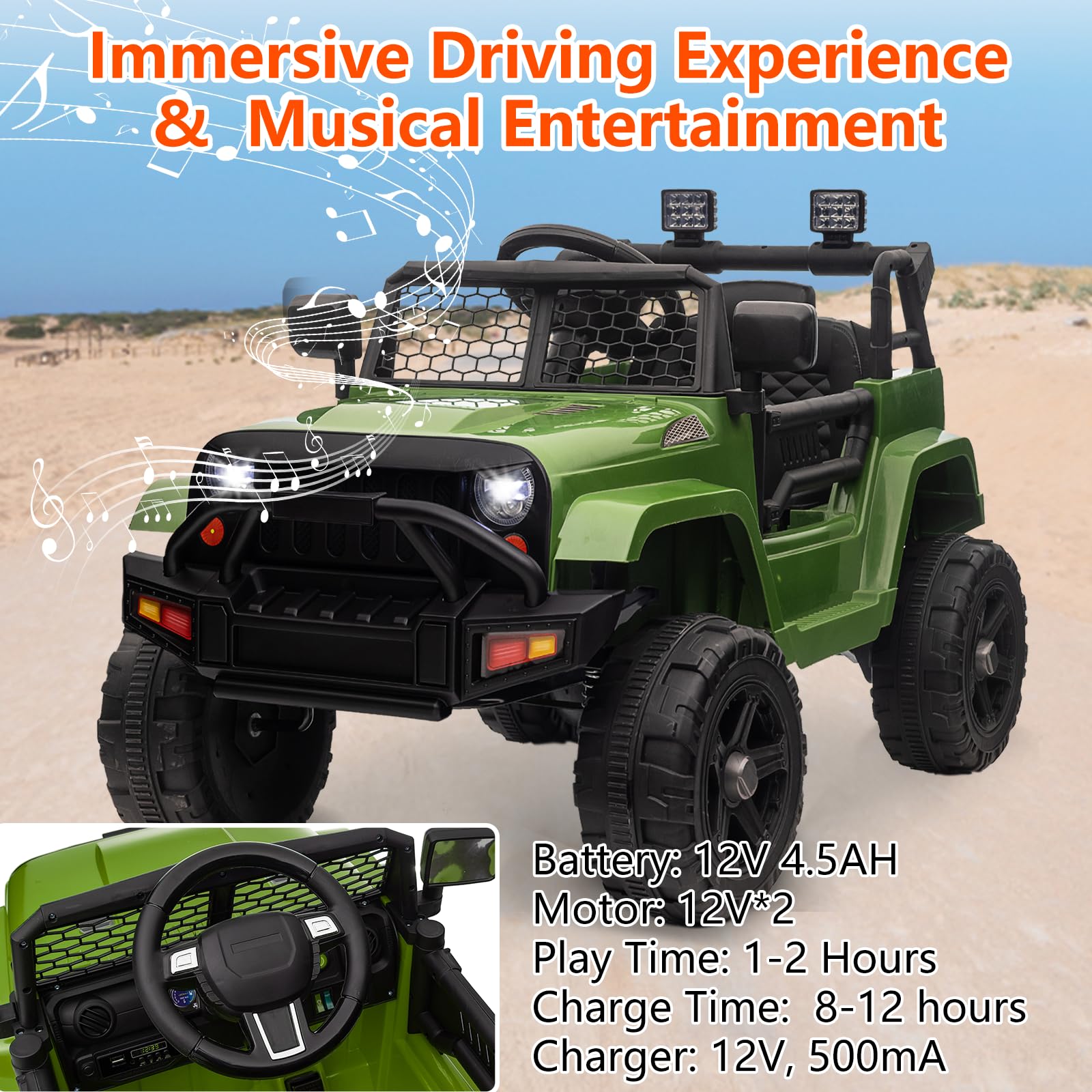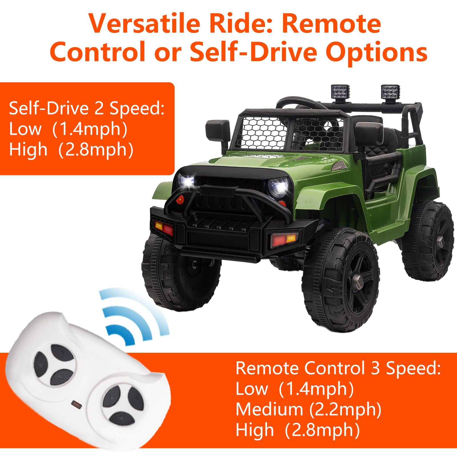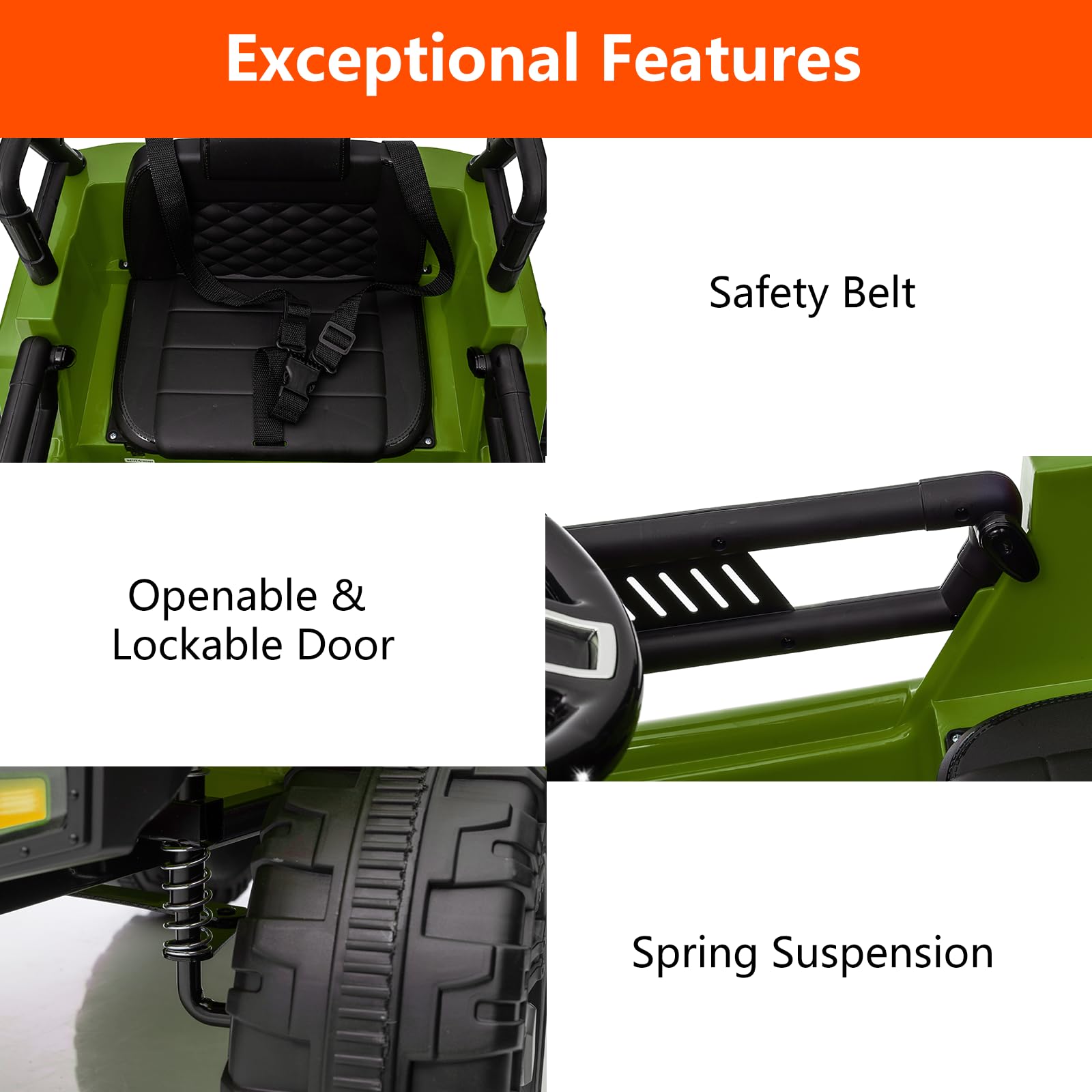 Garvee Ride - P Series: 12V Ride On Truck Car for kid : Remote Control, 3 Speeds, MP3 Music, Suspension, LED Lights,for 3+ Year Old - Green