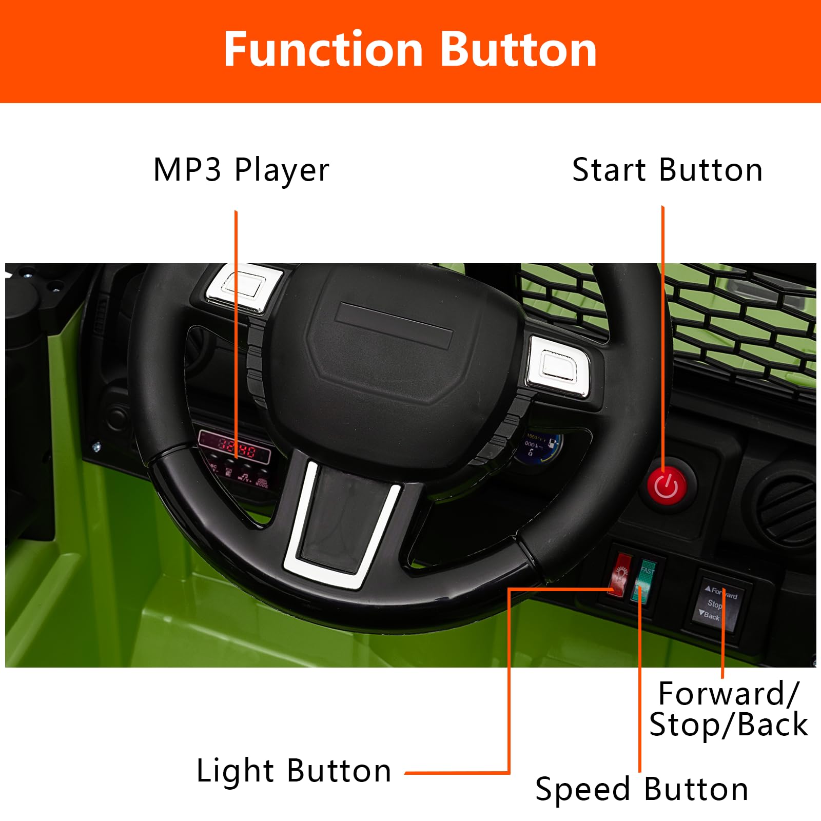- Realistic Driving Experience: Easy to start by one key. This electric truck features MP3 Music, USB socket, headlights and high/low speed function, which enables the kids can enjoy the real driving experience with this car