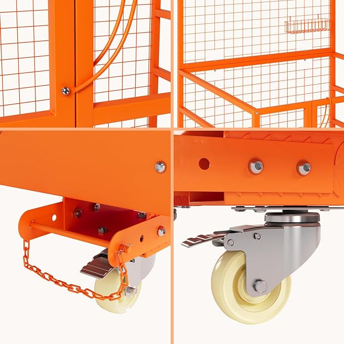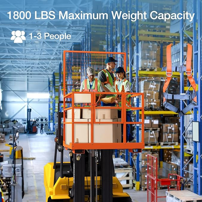 Garvee 43x45 Inch Forklift Safety Cage, 1800LBS Capacity Forklift Man Basket Work Platform with Guardrail and Safety Lock for 1-3 People, 2 Wheels with Brakes and 2 Wheels Without Brakes