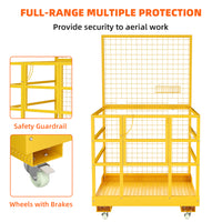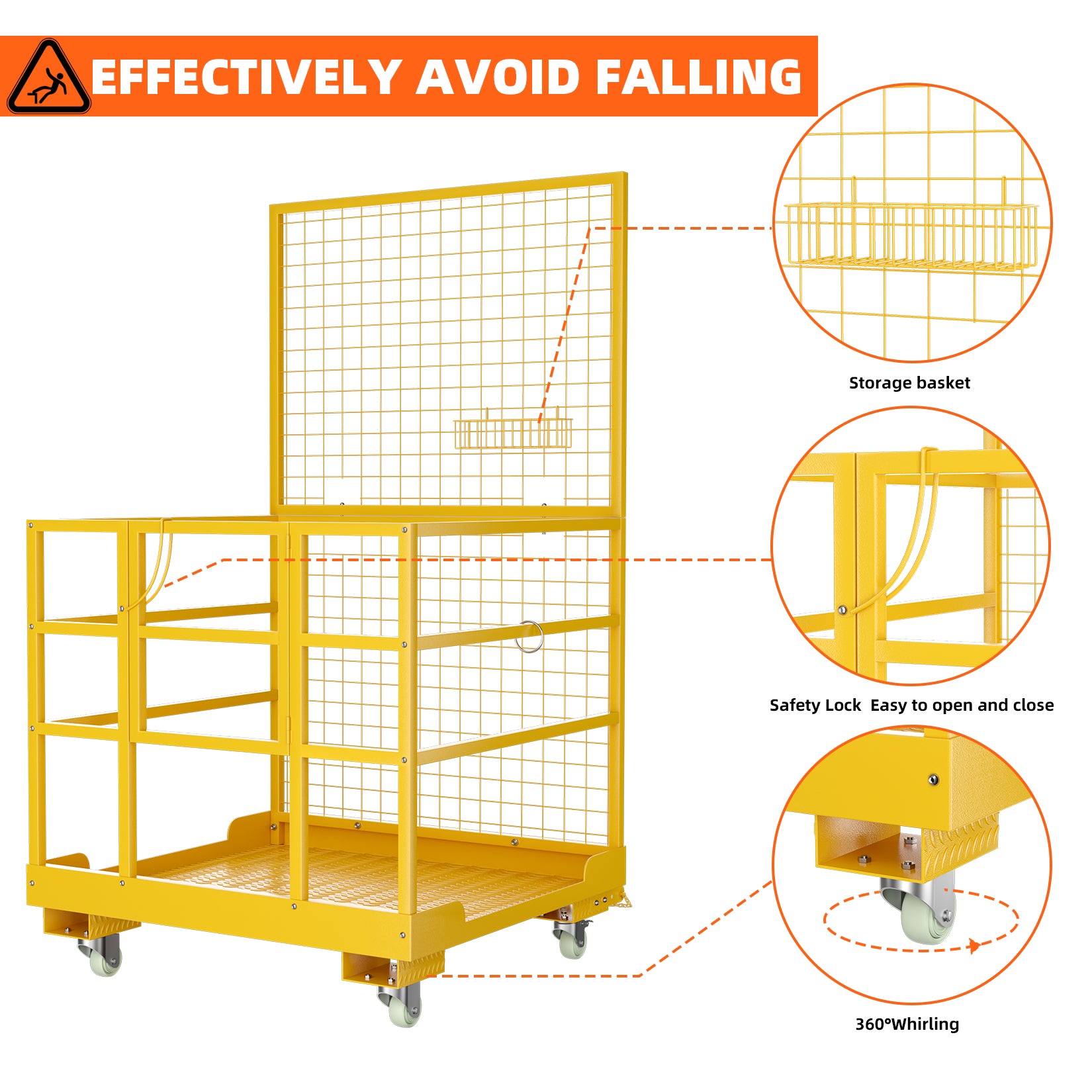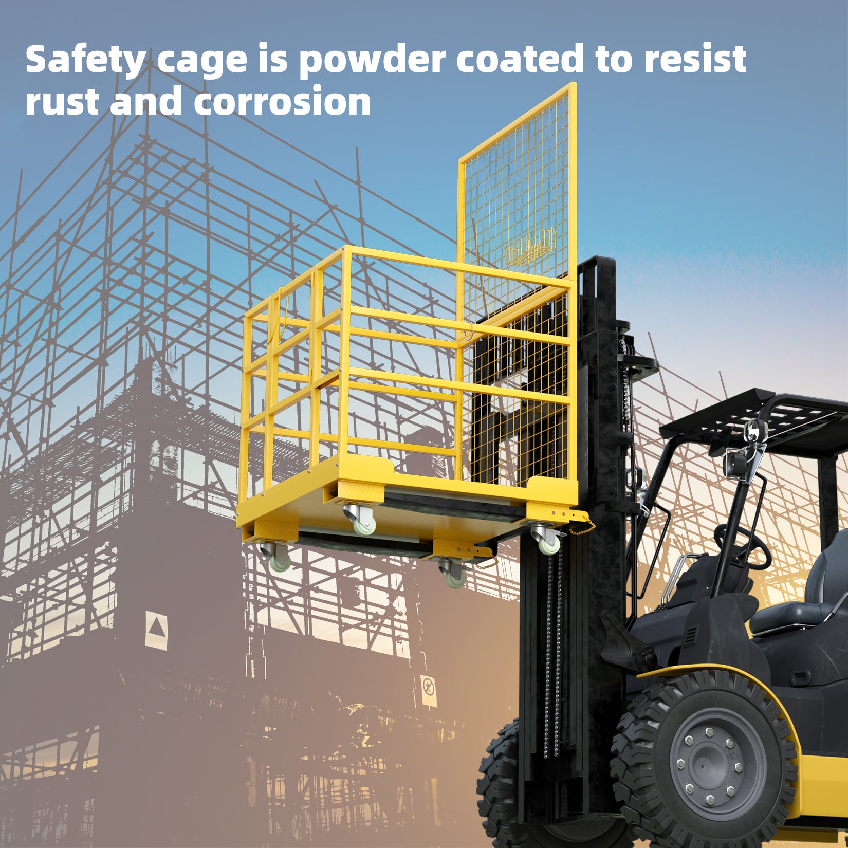 Garvee 43"x45" Forklift Safety Cage, Forklift Man Basket Forklift Work Platform with Safety Harness & Lock, 1400lbs Capacity Drain Hole & Wheels & Tool Basket, Perfect for Aerial Work