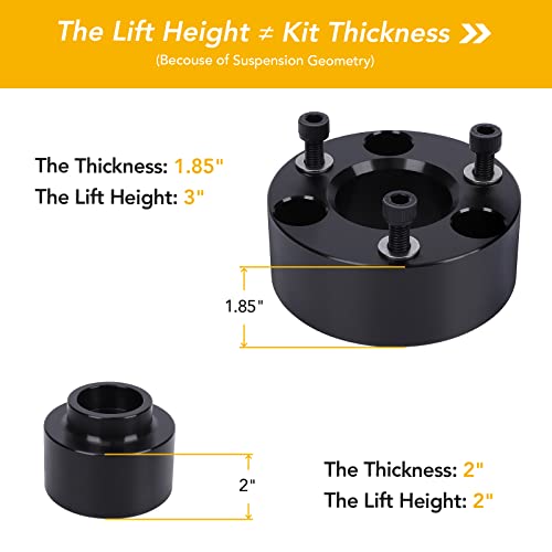 Due to the geometry of the suspension,the ratio of lifting height to kit thickness is not 1:1.The actual thickness of the leveling lifting kit itself is less than the lifting height