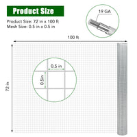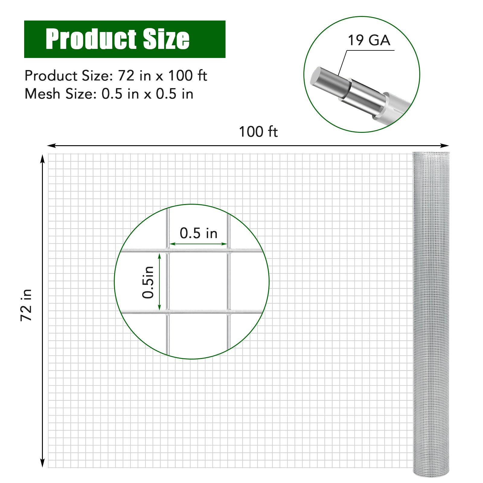 Garvee 1/2inch 6'×100' 19 Gauge, Chicken Wire Fence Wire Mesh Fence Galvanized Steel Poultry Netting Garden Fence Tree Guard Wire Fence Rolls Hardware Cloth for Yard Vegetable Plant Protection, Sliver