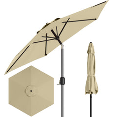 Garvee 7.5' Outdoor Patio Umbrella, Market Umbrella, 6 Sturdy Ribs UV Protection Waterproof, Tan
