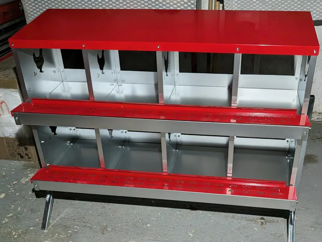 Garvee Nesting Boxes for Chickens, 10 Compartment Chicken Nesting Box with Elevated Metal Legs, Metal Chicken Laying Boxes with Perch, Secure Lid, Versatile Wall Mount or Free Standing for Hens, red
