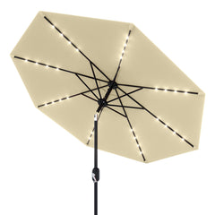 I'm extremely satisfied with this 10-foot outdoor umbrella! The diameter of the umbrella surface is large enough to easily cover outdoor dining tables and chairs, providing comfortable shade for family and friends. The design of 8 sturdy ribs makes the umbrella very stable when used outdoors, and it can remain stable even in windy weather. The tilting crank is easy to operate and the Angle of the umbrella can be easily adjusted as needed to ensure the best shading effect.The built-in solar lamp is a very practical feature. It lights up automatically at night, which not only makes it convenient to use at night but also adds a warm atmosphere to the outdoor space. The umbrella surface is made of high-density UV-resistant fabric, which can effectively block ultraviolet rays and protect the skin from sun damage. The overall appearance is simple and elegant, suitable for all kinds of outdoor environments. Whether it's by the swimming pool, on the deck or in the garden, it can blend perfectly. This umbrella is not only practical but also enhances the overall aesthetic appeal of the outdoor space, offering great value for money!