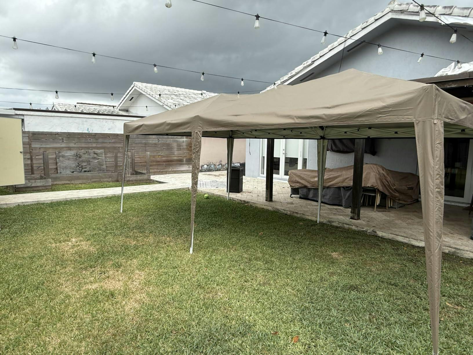 - 【Easy Setup】The 10x20 pop-up canopy can be quickly set up and taken down by 2-3 people in minutes without the need for tools, accommodating 15-20 individuals with ease. Simply remove the fully assembled frame from the bag, place the fabric on top, extend the legs, and you're all set.