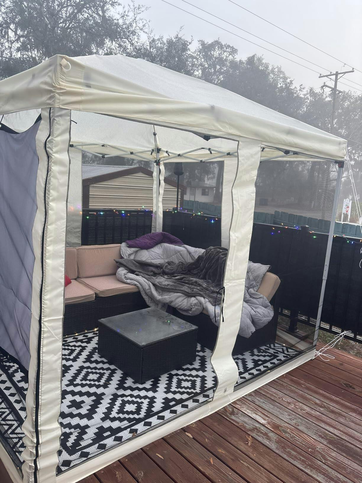 You know how when you buy something and then open the box and it is the most wonderful surprise ever because it farrrrr surpasses your expectations? Well this Gazebo is just such a surprise! It doesn't happen often any more these days, but this time it did. We absolutely love this Gazebo. Every evening, my husband and I loved sitting outside with a drink while we watch the sun go down. We have not been able to do that in a very long time because mosquitoes always crashed the party. Now, with the GARVEE Gazebo, we can once again enjoy our evenings without any mosquitoes. Thank you GARVEE for the best surprise ever! This Gazebo is extremely light weight and easily managed by just one person. For that reason, it really needs to be tied down because a slight wind can move it around. All in all, it's a great investment.