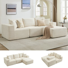 Garvee 108” Boneless Cloud Sectional Sofa for Living Room, Compressed Modular L-Shaped Sofa with Deep Seat, Frameless Corduroy Couch in Boxes, No Assembly Required 3-Seater, Left-Green