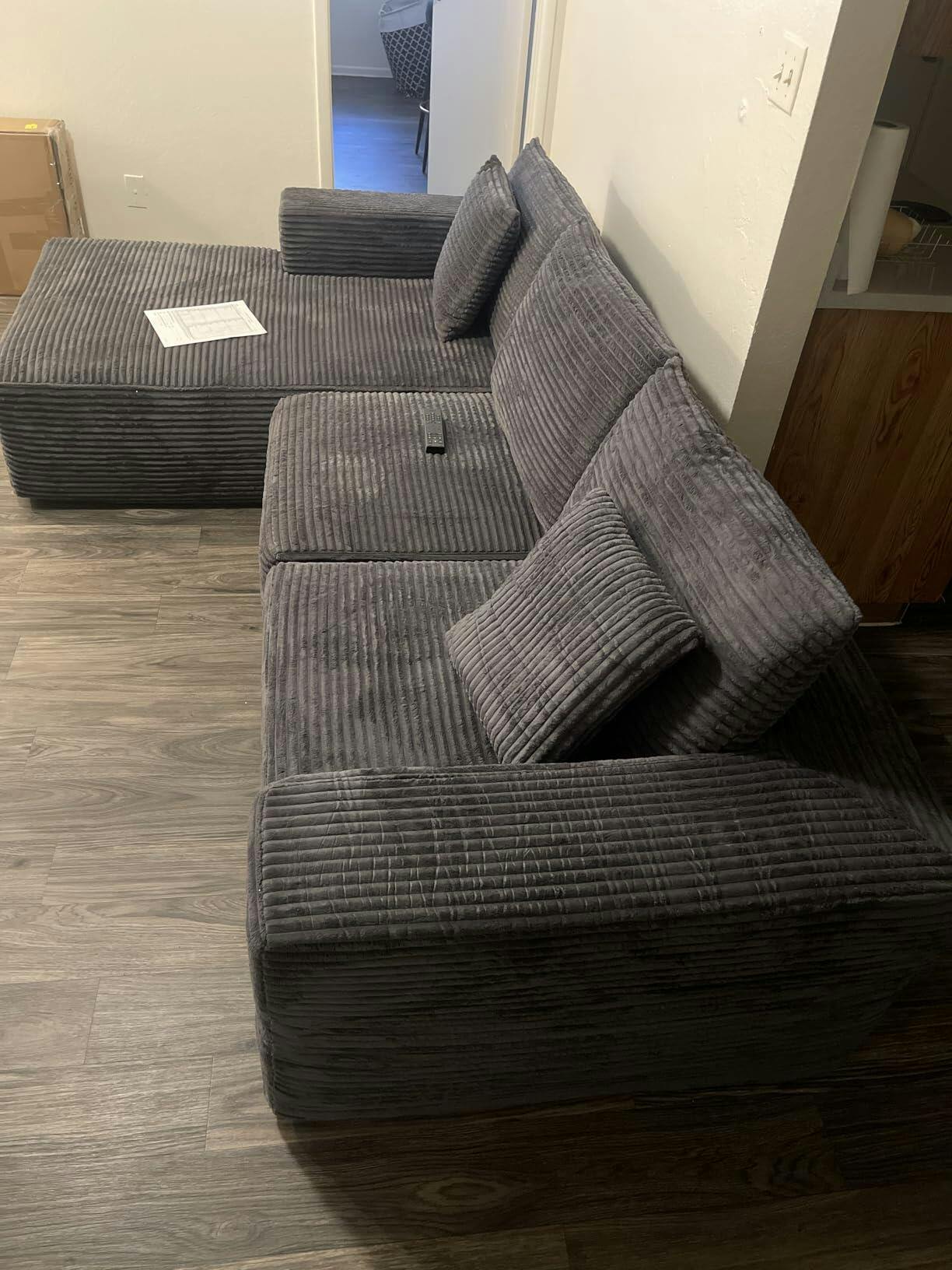 Garvee 108“ Boneless Cloud Sectional Sofa for Living Room, Compressed Modular L-Shaped Sofa with Deep Seat, Frameless Corduroy Couch in Boxes, No Assembly Required 3-Seater, Left-Grey