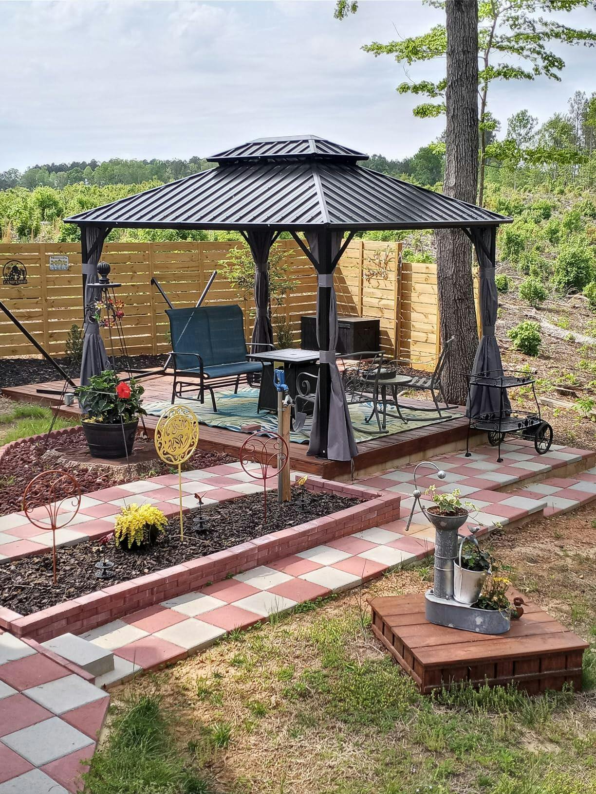 We’ve hosted several parties under this gazebo already. It’s roomy enough for guests and keeps the sun off perfectly on hot days.