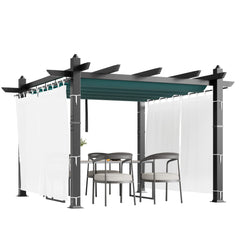 Garvee 10x13ft Retractable Outdoor Pergola with Canopy & Side Mesh Upgraded Gray Aluminum Pavilion for Backyard, Patio & Porch, Blue+White