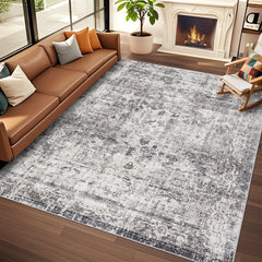 Garvee 10x13 Washable Area Rug, Soft Low Pile Large Area Rug with Non-Slip Backing, Boho Vintage Distressed Rugs for Living Room Bedroom Dining Room, Grey