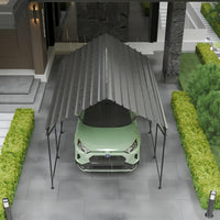 Garvee 10'x16' Galvanized Steel Carport with 1700LB Snow Load & Reinforced Frame for Trucks Boats All-Weather Shelter Grey