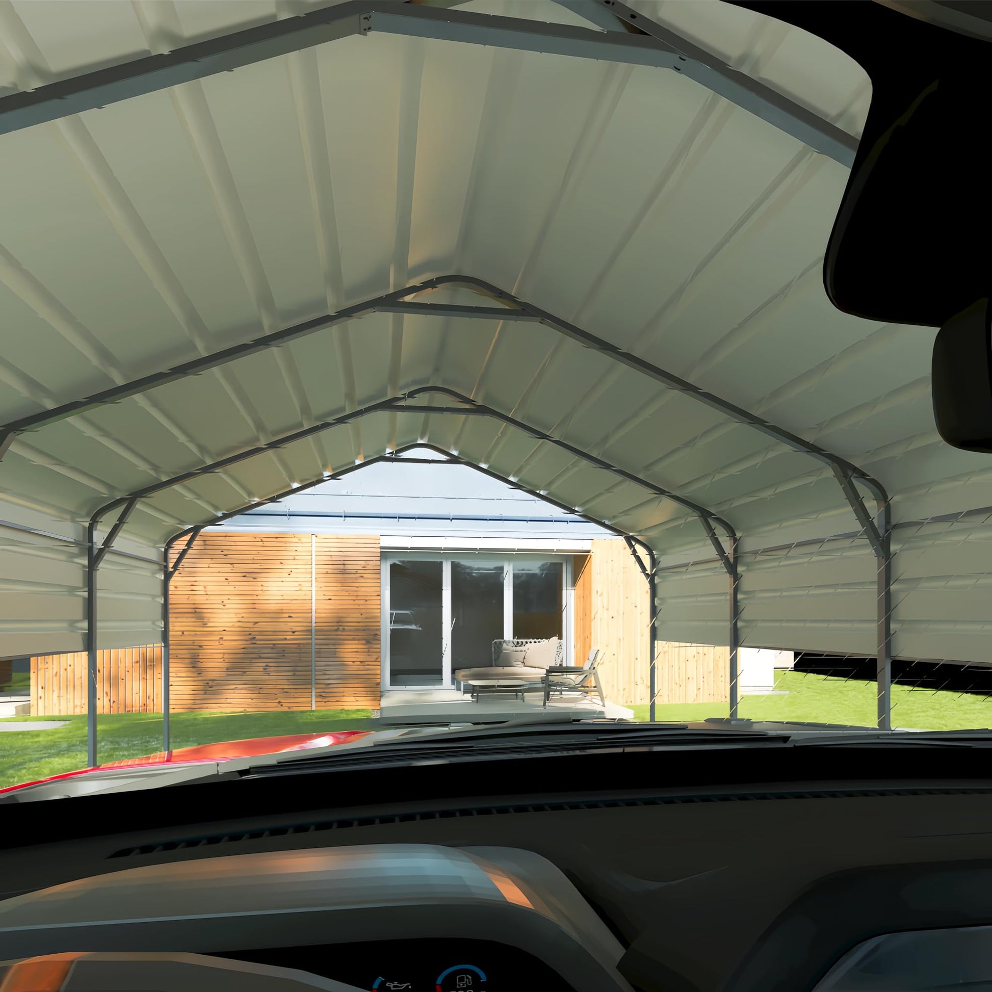 - 【Spacious Storage Space】 - Our garage measures 196.97 inches in length, 117.82 inches in width, and 119.96 inches in height, with a rafter length of 80.71 inches, providing ample space for your cars, trucks, and even boats. It can function as a car shelter or be used as a canopy for outdoor activities.