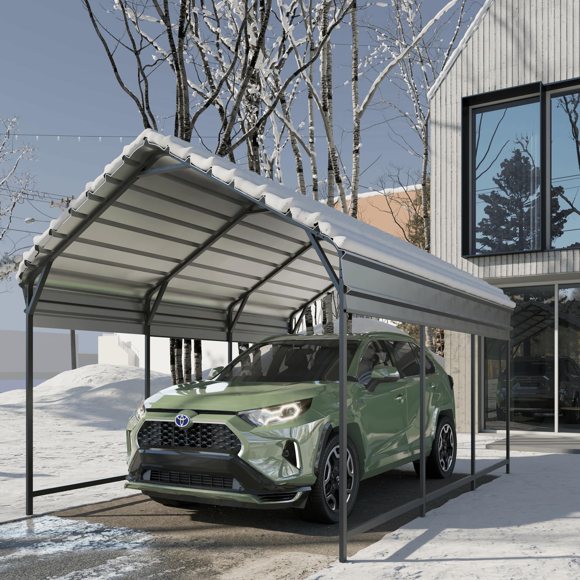 - 【Heavy-Duty Outdoor Carport】 - We have upgraded our heavy-duty garage canopy, featuring a galvanized steel roof to enhance its ability to withstand any weather conditions. Our outdoor metal carport canopy is comprised of a heavy-duty galvanized steel roof and powder-coated tube frame, providing features of rust resistance, sturdiness, and durability.