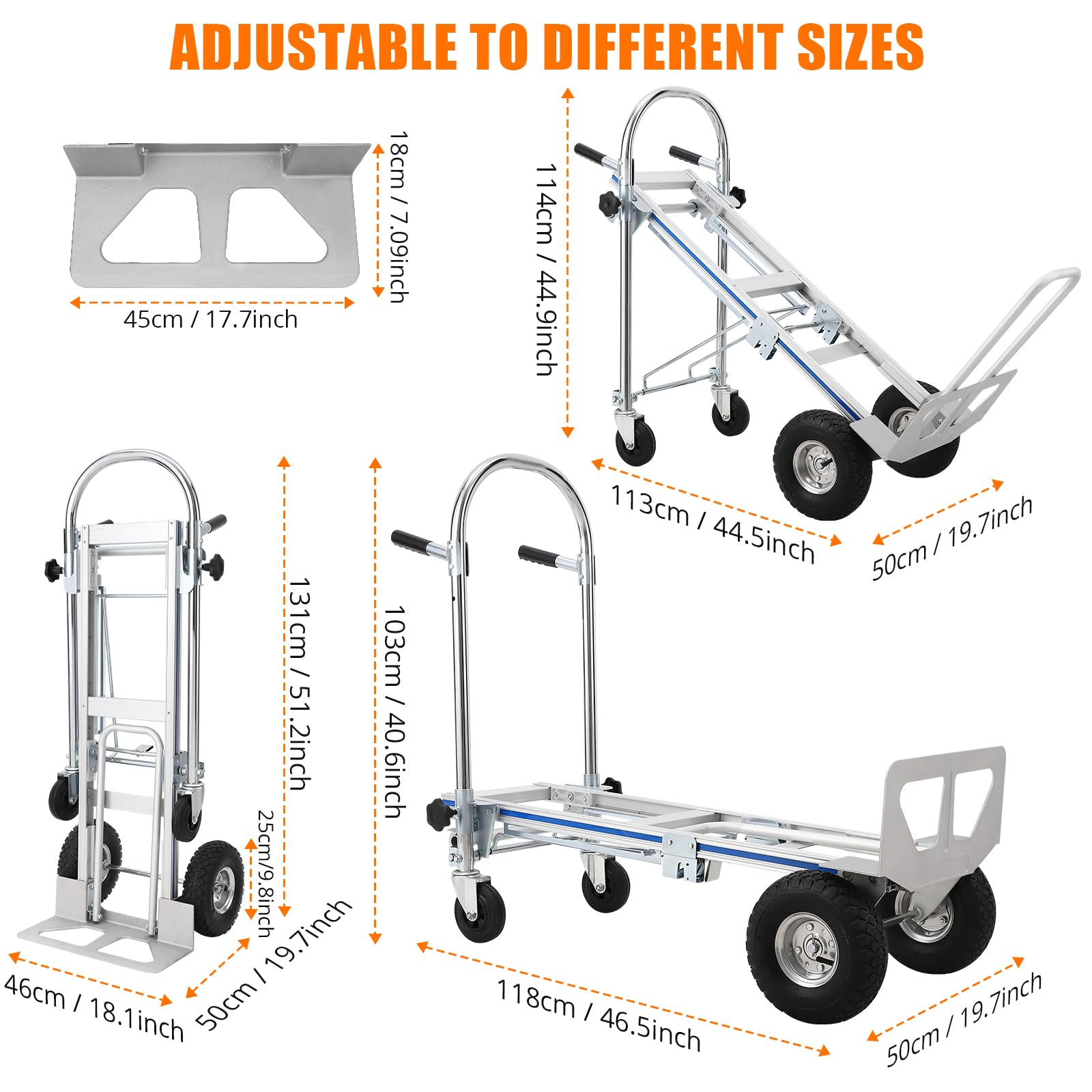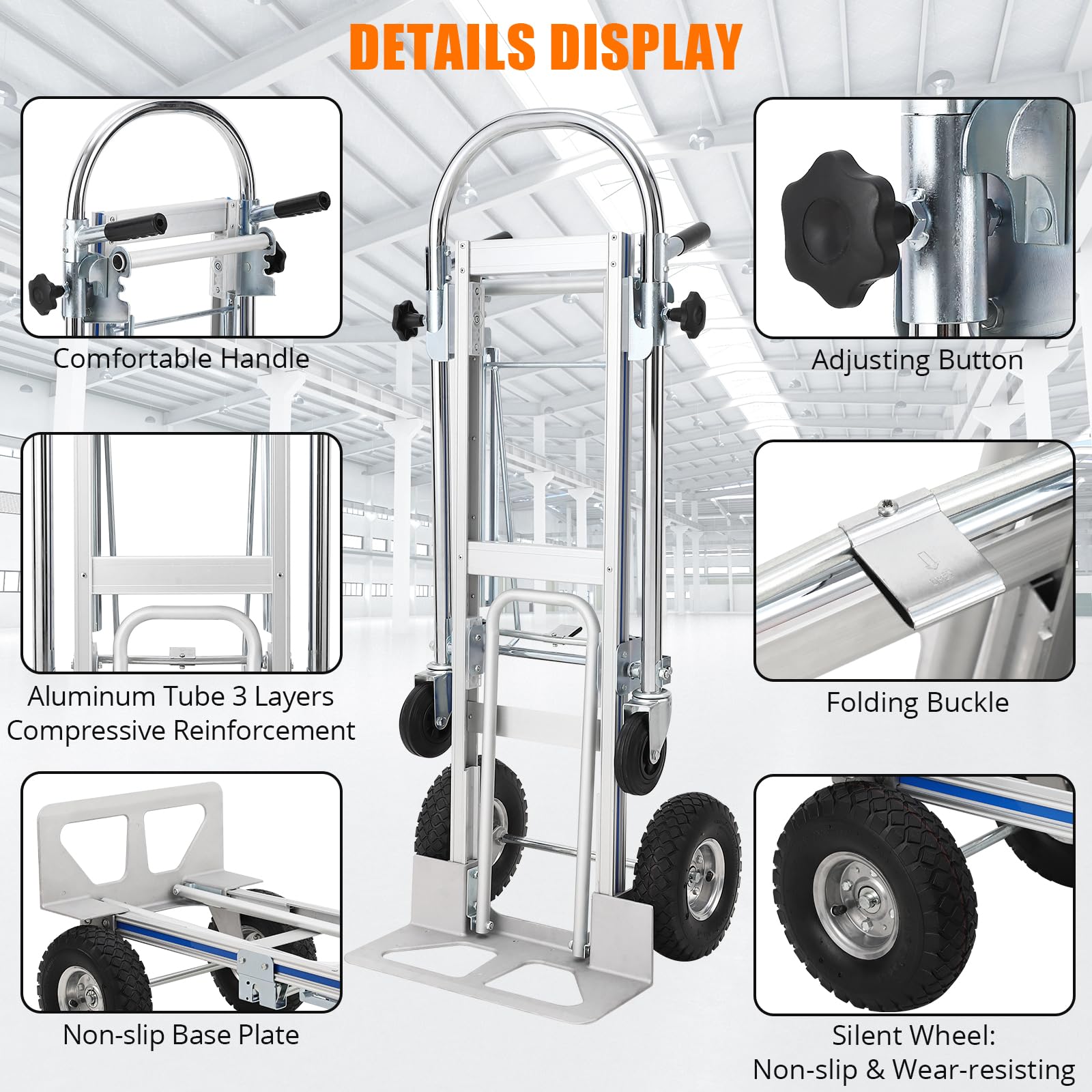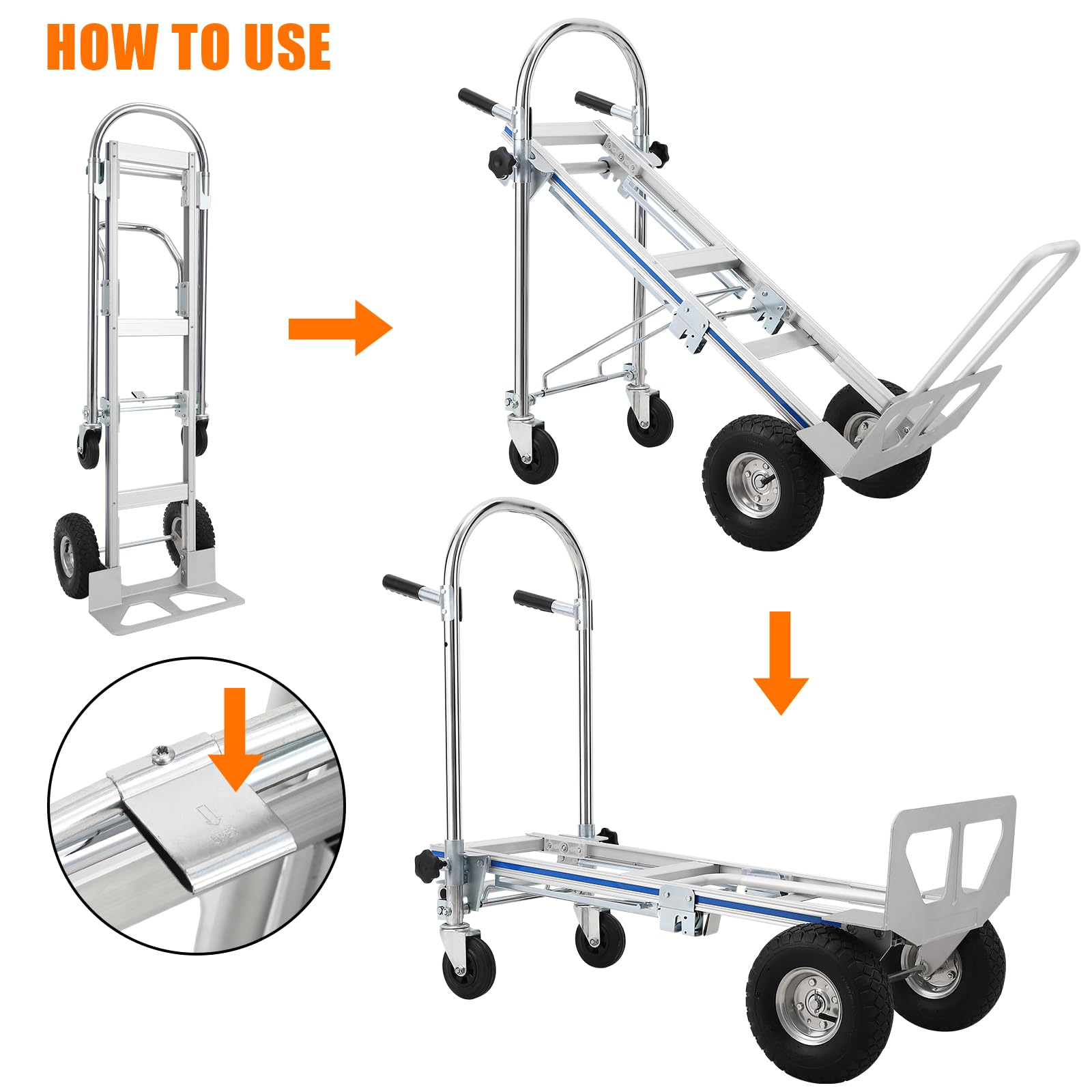 - Versatile 2-in-1 Design: Quickly converts from a two-wheel hand truck to a four-wheel utility cart, providing flexibility and efficiency for various moving tasks.