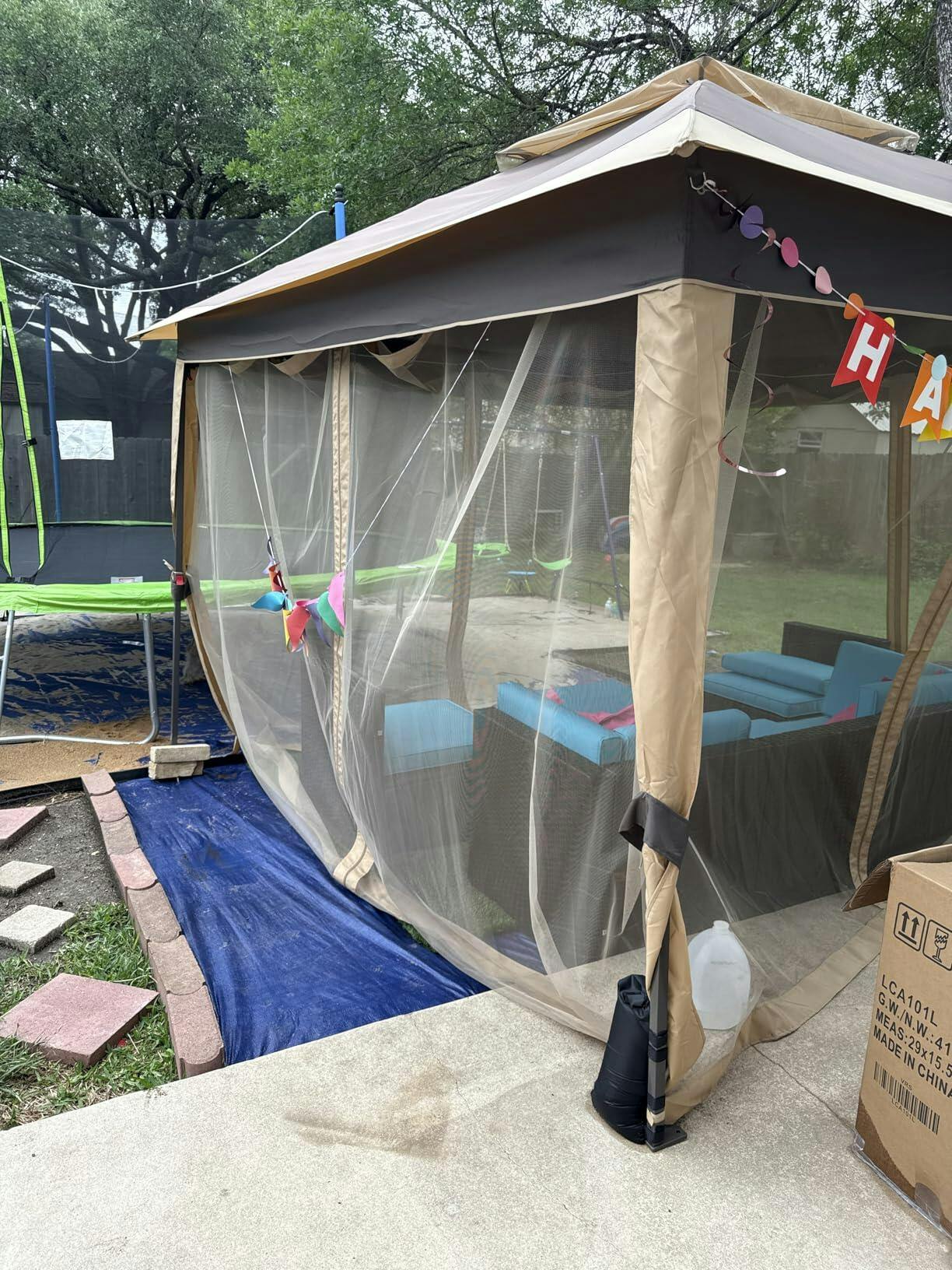 I'm so glad I got the Gazebo Tent with Mosquito Netting! Living in South Carolina, mosquitos can be a real nuisance, but this gazebo has been a game-changer. The mosquito netting is fantastic and has really helped limit the number of bug bites my kids get. One thing to note is that setup does require two people - my wife tried to do it solo and wasn't able to get it up, but with two of us, it went smoothly. Everything that came with the gazebo was accounted for in the box, and the carrying bag makes storage a breeze. I primarily use this for events, but if you live in a wind-free area, I think it would be perfect for daily use as a nice backyard feature. Overall, I'm extremely happy with this purchase and would highly recommend it!