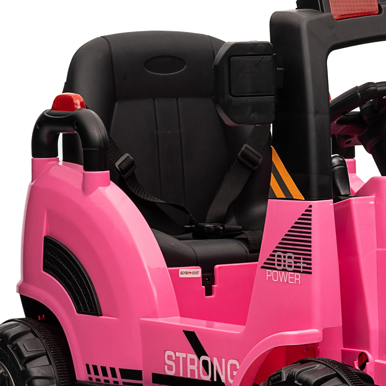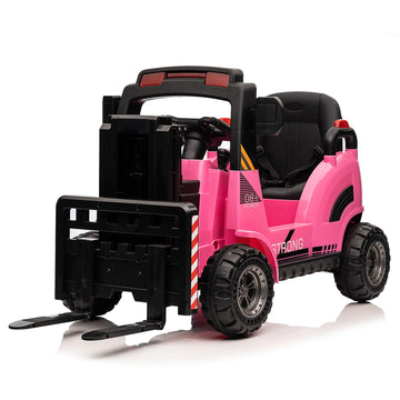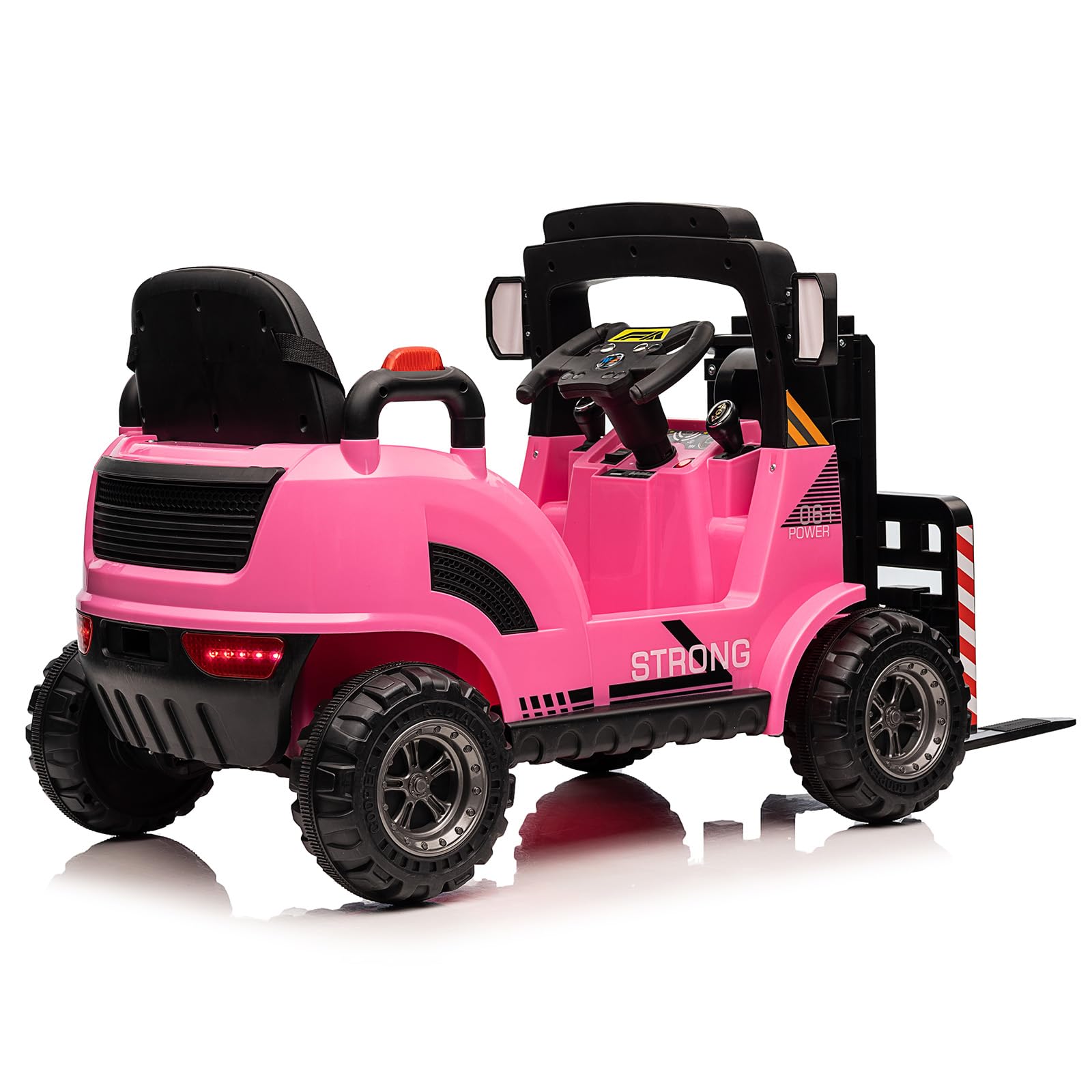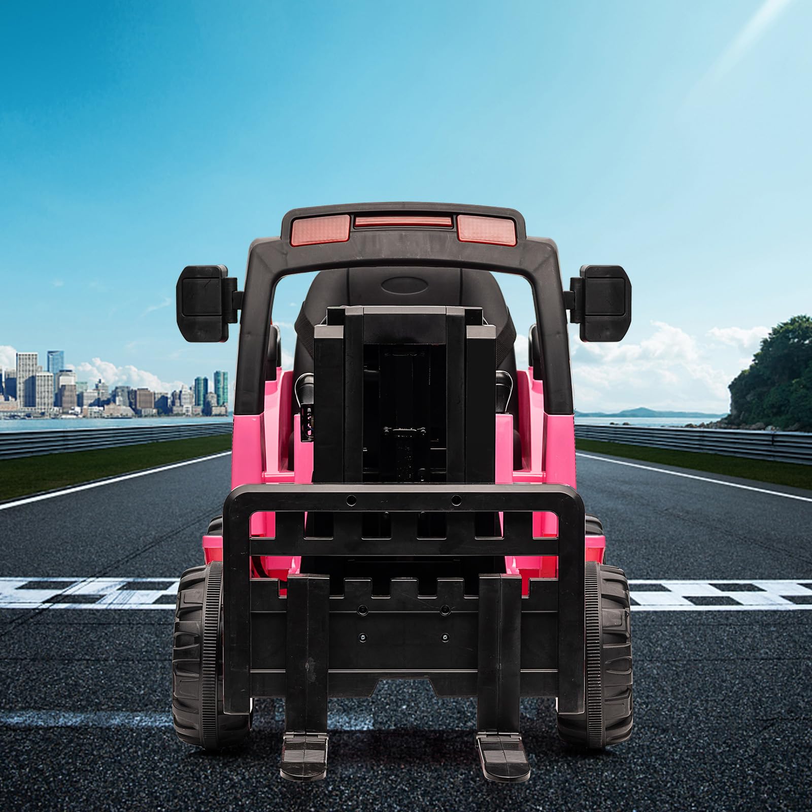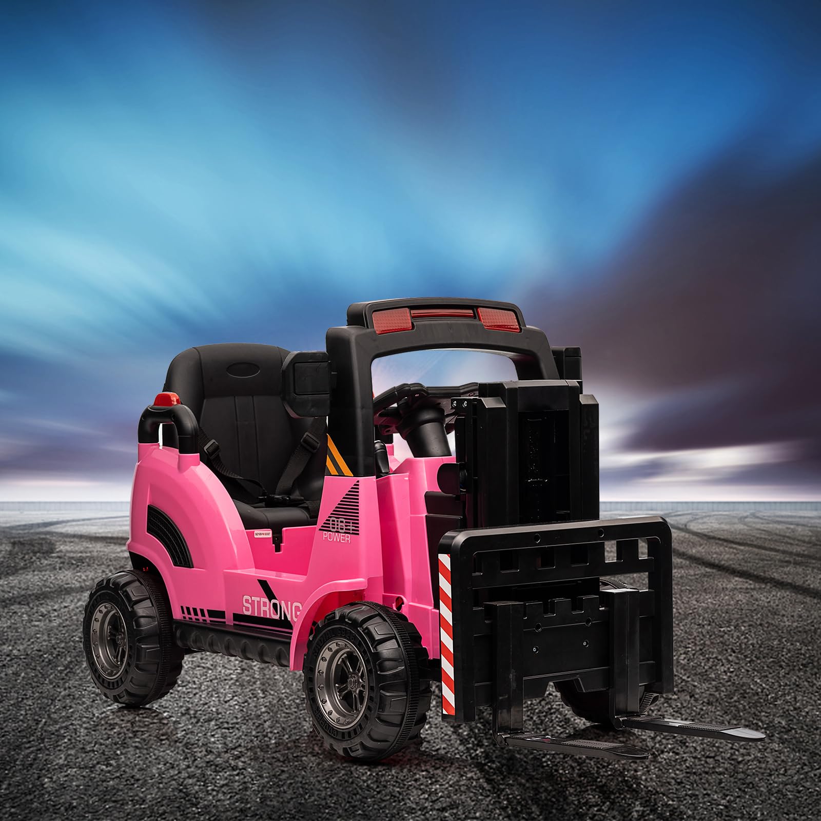 Garvee Ride - P Series: 12V Electric Forklift Ride-On: Liftable Fork, Remote, Music, Realistic Design, 66lb Load, for 3-7 Years - Pink