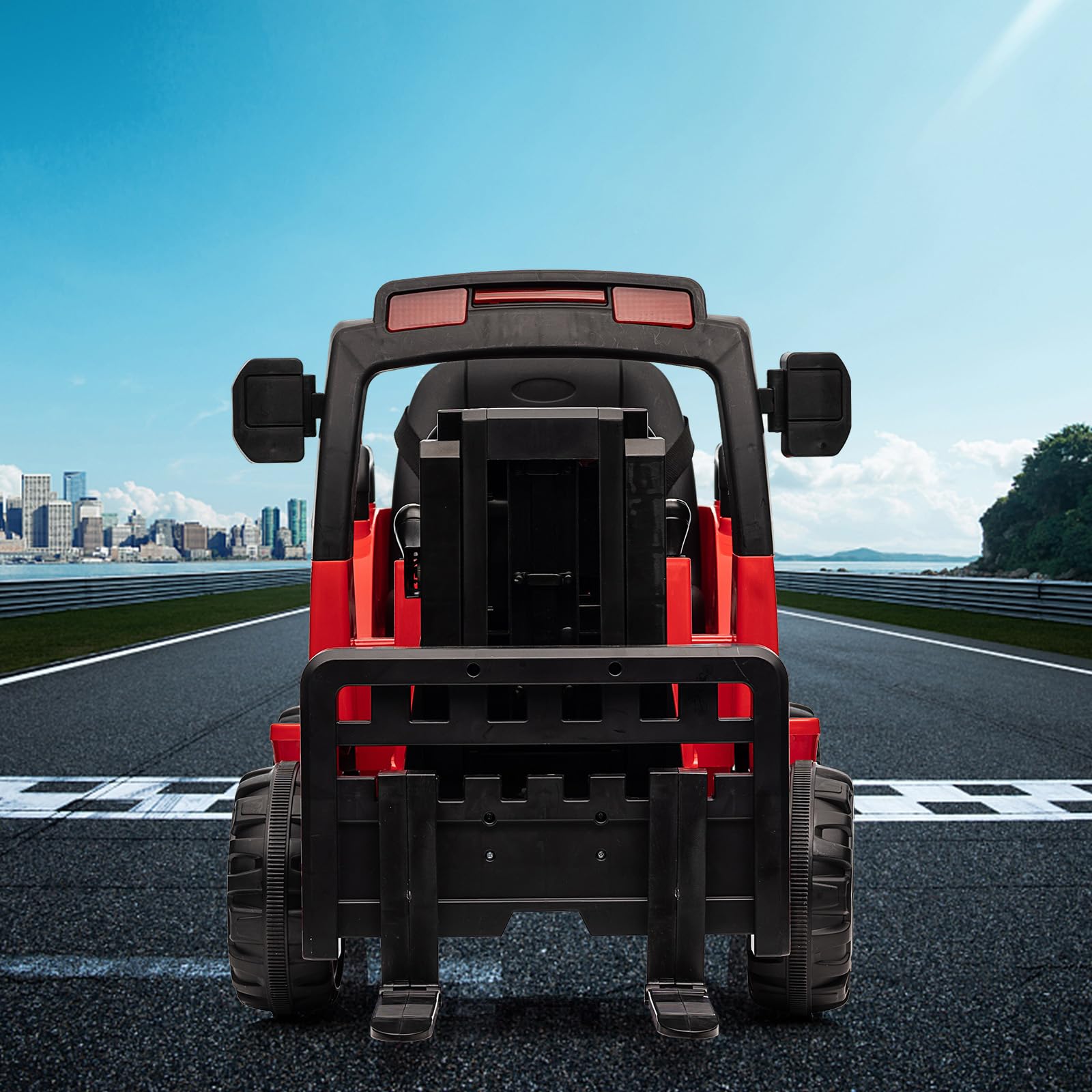 Garvee Ride - P Series: 12V Electric Forklift Ride-On: Liftable Fork, Remote, Music, Realistic Design, 66lb Load, for 3-7 Years - Red