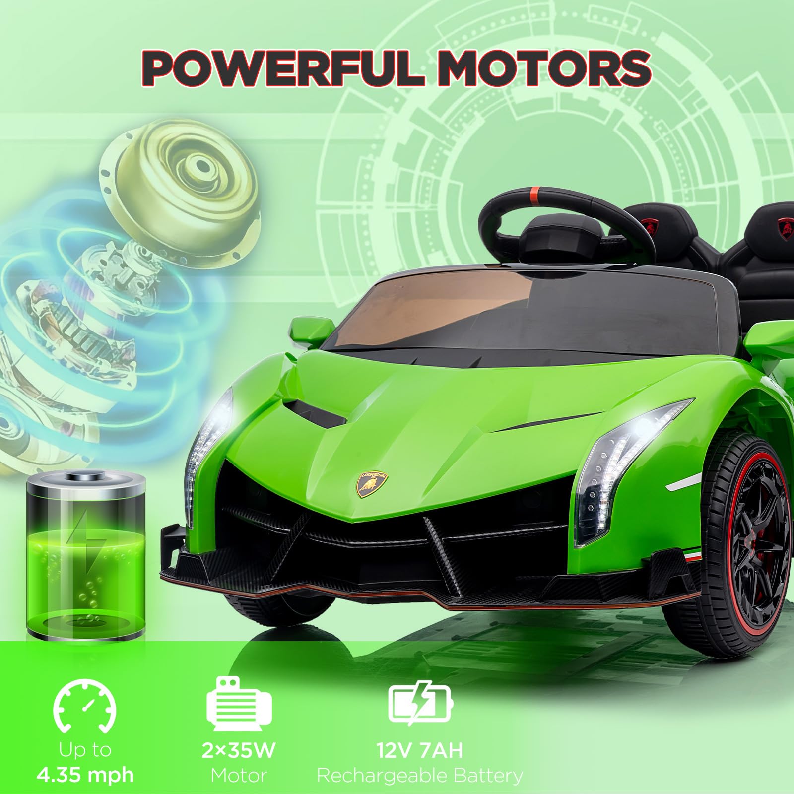 Garvee 12V Kids Ride On Car, Licensed Lamborghini Venono Electric Car w/Parent Remote Control, Scissor Door, 3 Speeds, LED Headlights, Rocking & Music, Battery Powered Ride on Toy for Boys Girls- Green
