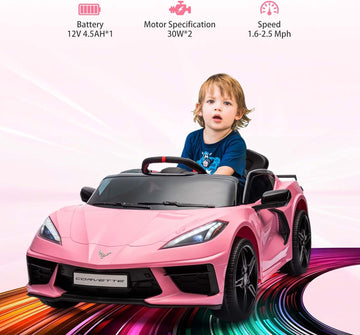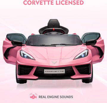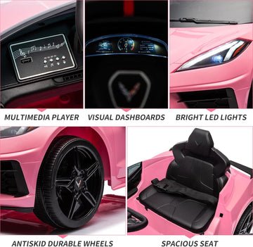Garvee Ride - P Series: 12V Kids Ride on Car Licensed Corvette Battery Powered Car Toddles Electric Sports Car Toy with Remote Control, Visual Dashboard, LED Lights, Music, Gifts for Boys Girls, Pink