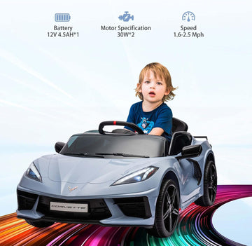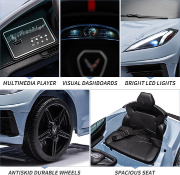 Garvee Ride - P Series: 12V Kids Ride on Car Licensed Corvette Battery Powered Car Toddles Electric Sports Car Toy with Remote Control, Visual Dashboard, LED Lights, Music, Gifts for Boys Girls, Light Blue