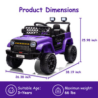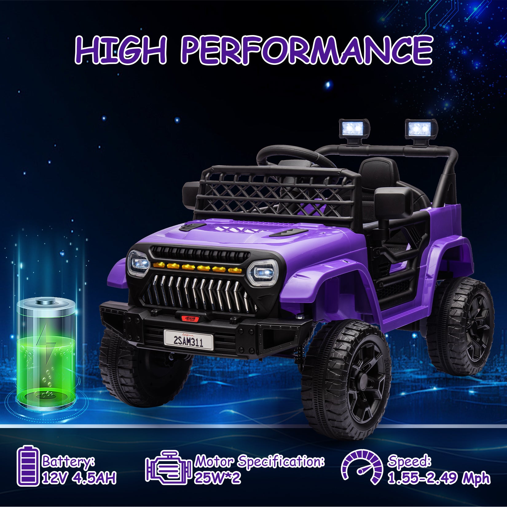 Garvee Ride - P Series: 12V Kids Ride On Truck for Toddles age 3+,with 2.4G Remote Control, Spring Suspension, Battery Display, LED Lights, Music, Battery Powered Ride on Car - Purple